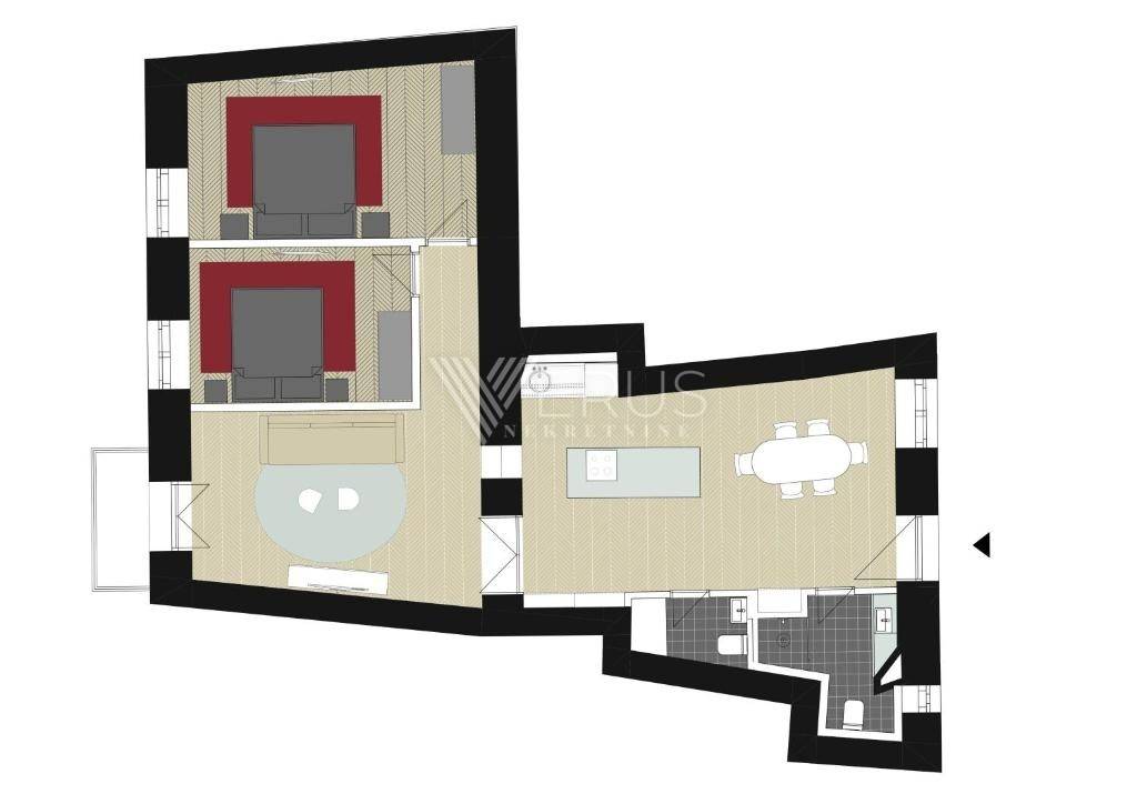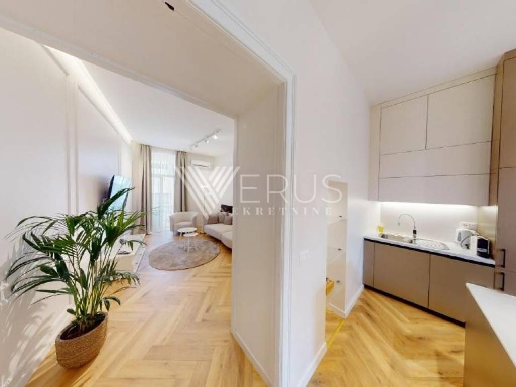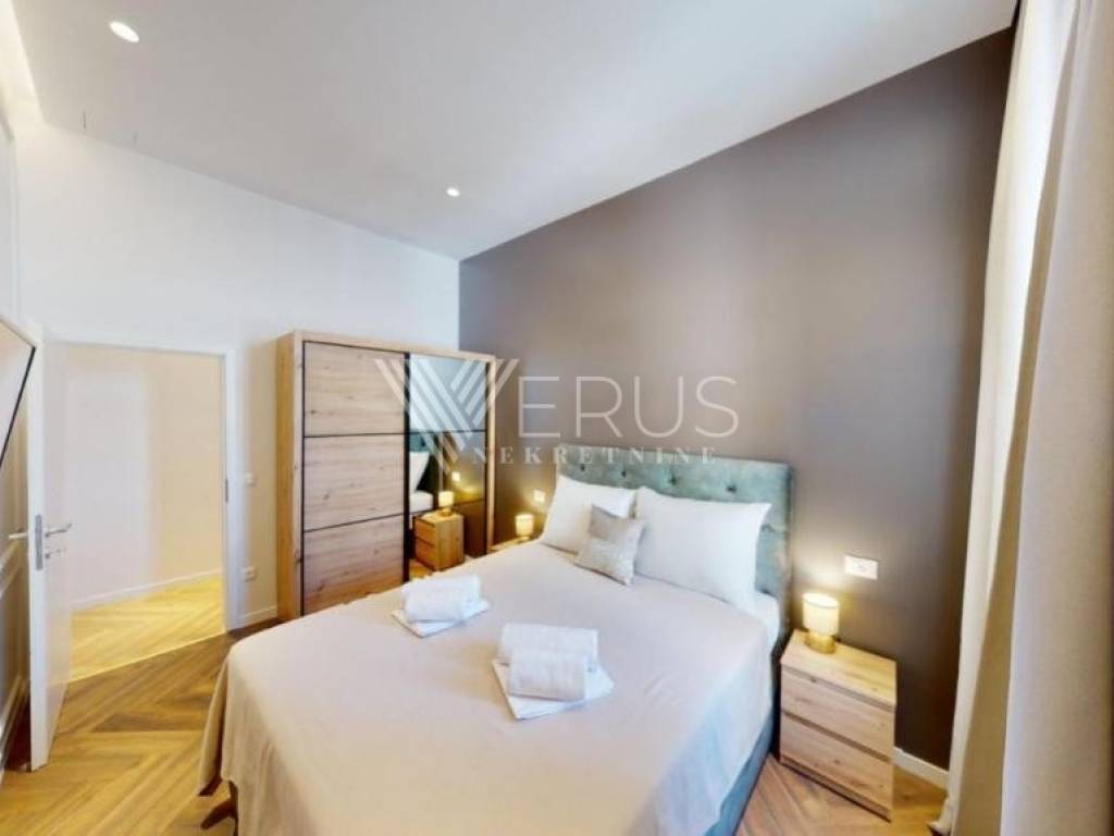 Die Wohnung besteht aus zwei Schlafzimmern mit einem Wohnzimmer (2S+DB) und besteht aus zwei komfortablen Schlafzimmern, einem geräumigen und hellen Wohnzimmer mit Anschluss an die Küche, einem Badezimmer, einer separaten Toilette und einem Balkon, der zusätzlich zu einem angenehmen Aufenthalt beiträgt. Der Zeitplan ist funktional und sowohl an das Familienleben als auch an die touristische Vermietung angepasst.