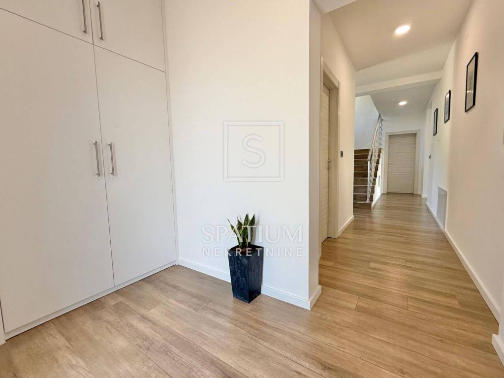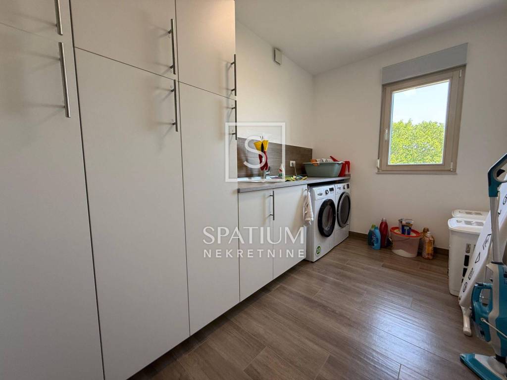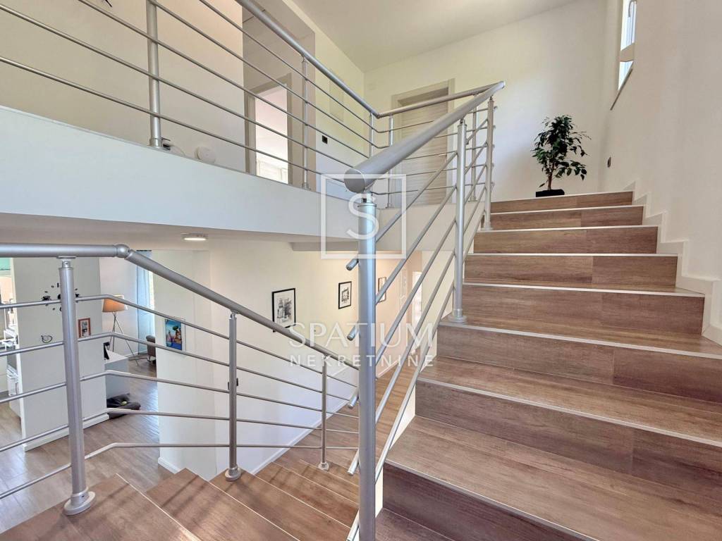SRDOČI, aus unserem Angebot heben wir ein freistehendes Familienhaus mit einer Fläche von 360 m2 hervor. Das Haus wurde Anfang 2018 gebaut und beim Bau selbst wurden hochwertige Materialien und Geräte verwendet, wie zum Beispiel: + Wärmedämmfassade – Steinwolle + Aluminiumschreinerei, Holz im Inneren + Keramikboden in Holzoptik + Fußbodenheizung – Daikin-Wärmepumpe + Schalldämmung zwischen den Räumen Das Haus besteht aus einem Keller, Erdgeschoss, Obergeschoss und einem hohen Dachgeschoss. Das 47 m² große Untergeschoss besteht aus dem Hauptraum (29,2 m²), einem Flur (9,6 m²) und dem Raum unter der Treppe. Der Raum selbst steht derzeit leer und bietet aufgrund der Fenster und Belüftung vielfältige Nutzungsmöglichkeiten: Fitnessraum, Sauna, Büro, … Das Erdgeschoss besteht aus Eingang, Flur, Bad, Schlafzimmer, Küche mit Essbereich und Speisekammer sowie Wohnzimmer. Zusätzlich gibt es im Erdgeschoss eine 21 m2 große Garage mit warmem Eingang zum Haus und zwei Terrassen: südwestlich vom Wohnbereich und südöstlich mit Zugang zum Garten von der Küche aus. Im Obergeschoss befinden sich vier Schlafzimmer, ein Badezimmer, eine Waschküche und ein Abstellraum (könnte ein drittes Badezimmer sein). Alle Räume sind nach Süden ausgerichtet und zu jeder Tageszeit mit Tageslicht durchflutet. Das „Hauptschlafzimmer“ verfügt über ein eigenes Ankleidezimmer und Panoramafenster mit Blick auf das Meer und Učka. Die beiden östlichen Zimmer öffnen sich zu einem geräumigen Balkon mit Blick auf das Meer und ins Grüne. Über eine Klapptreppe gelangt man in ein hohes Dachgeschoss mit einer Nutzfläche von ~45 m2. Neben dem Haus befindet sich ein 582 m2 großer Garten, der zur Hälfte aus Grünfläche und zur anderen Hälfte aus dem Weg zur Garage/zum Stellplatz besteht. Es liegt am oberen Ende der Straße, umgeben von Wäldern und viel Grün, aber auch nur 10 Gehminuten von allen Annehmlichkeiten entfernt: Schulen, Kindergärten, Bushaltestellen, Geschäfte, ... Das Haus wird nach Absprache komplett möbliert und ausgestattet verkauft. SRDOČI ist ein Wohnviertel im Westen der Stadt Rijeka, nur wenige Minuten vom Stadtzentrum entfernt und verfügt über eine gut ausgebaute Infrastruktur, die eine hervorragende Verkehrsanbindung an andere Teile von Rijeka sowie an andere Teile der Kvarner-Bucht und Kroatiens gewährleistet. Die Verfügbarkeit von Gesundheitsversorgung, Schulen, Kindergärten, Geschäften, Banken, Postämtern, Parkplätzen sowie Kultur-, Unterhaltungs-, Sport- und Freizeitangeboten macht dieses Viertel zu einem äußerst begehrten Wohnort. Das relativ neue Viertel Rijeka kann als Wohngebiet beschrieben werden, dem es gelungen ist, seine traditionelle Geschichte der Bildung und des Sports über die Jahre hinweg zu bewahren. Die Grundschule „Srdoči“ wurde bereits 1986 eröffnet und verzeichnet seitdem aufgrund der zahlreichen Angebote jedes Jahr eine steigende Zahl an Kindern. Für alle weiteren Informationen wenden Sie sich bitte vertrauensvoll an den Makler. Rok Lulić lizenzierter Makler + 385 91 2206 204 rok@spatium.hr Spatium Immobilien + 385 51 272 903 info@spatium.hr