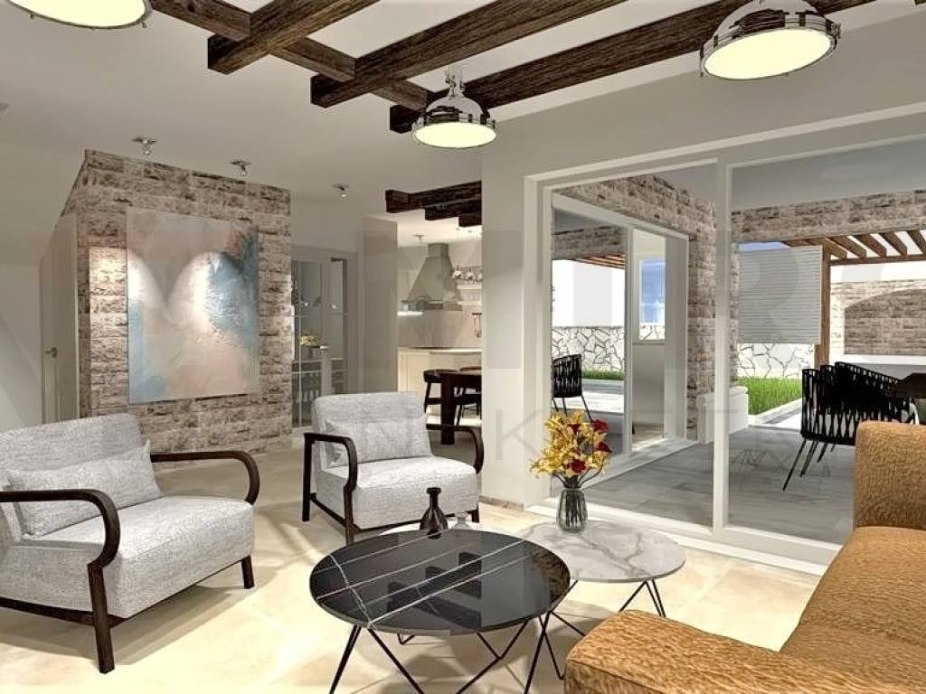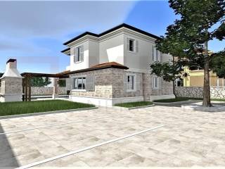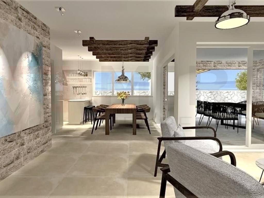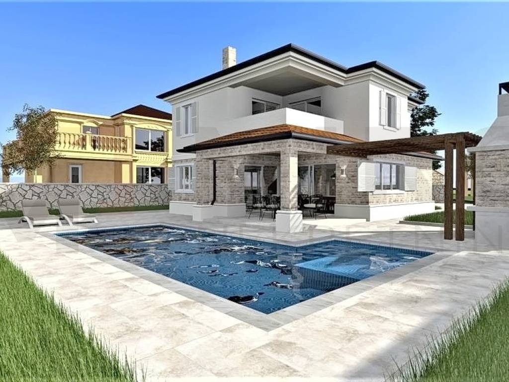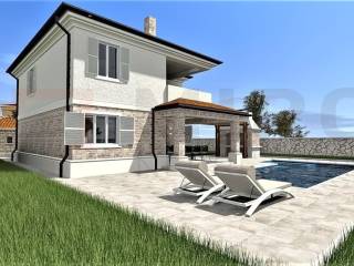 Insel Krk, Vrbnik, Umgebung, im Bau befindliche mediterrane Villa in ruhiger Lage der kleinen Inselstadt Garica. Auf 137 m2 Wohnfläche erstreckt sich die vollklimatisierte Villa über Erdgeschoss und Obergeschoss. Im ersten Stock der Villa befinden sich 3 Schlafzimmer, von denen eines über ein eigenes Bad, eine begehbare Dusche und die Möglichkeit verfügt, auf die überdachte Außenterrasse zu gelangen, und ein Badezimmer. Das geräumige Erdgeschoss ist voller Tageslicht und besteht aus einer Küche, einem Esszimmer und einem Wohnzimmer. Ein separates Badezimmer ist ebenfalls auf dieser Etage vorhanden. Vom Erdgeschoss der Villa gibt es einen Ausgang zu einer großen überdachten Terrasse mit einem großen Swimmingpool. Zukünftige Besitzer können die herrliche Aussicht vom Pool aus genießen. Innerhalb der Villa gibt es eine Nebeneinrichtung mit Grill und Esszimmer. Hochwertige Bauweise, rustikale Architektur und Top-Ausstattung. Die Villa wird mit PVC-Tischlerei, Fensterläden, hochwertigen keramischen Bodenbelägen und hochwertigen Sanitäranlagen ausgestattet. Die Umgebung selbst wird mit mediterranen Pflanzen, einem Bewässerungssystem und Grünflächen geschmückt. Die betreffende Immobilie ist in das Mehrwertsteuersystem einbezogen und unterliegt als solche nicht der Zahlung der Umsatzsteuer, was den Käufer des Hauses ausdrücklich von der Steuerpflicht befreit. Der Verkäufer dieses Hauses garantiert eine vollständige und ordnungsgemäße Dokumentation und eine einfache Übergabe der Immobilie an den Käufer. Voraussichtliche Baufertigstellung 23.07.