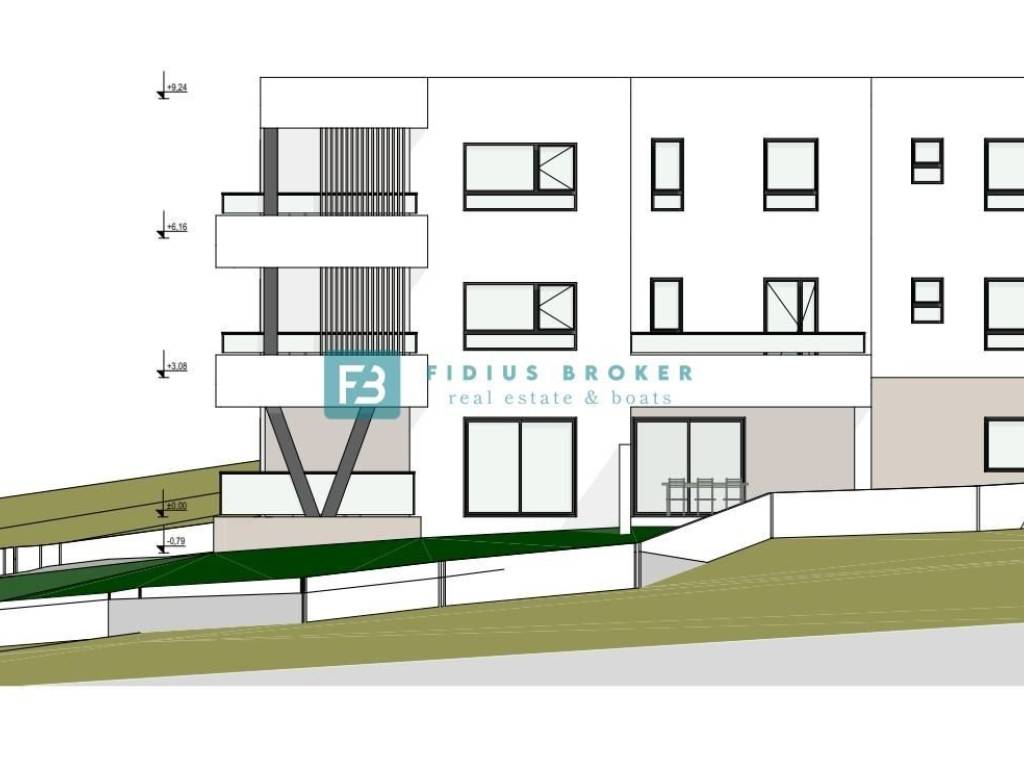 Ein neues Apartmentgebäude mit insgesamt 10 Wohnungen befindet sich in exzellenter Lage und bietet einen Panoramablick auf das Meer und die Stadt. Das Gebäude erstreckt sich über vier Etagen: Untergeschoss + Erdgeschoss + 1. Obergeschoss + 2. Obergeschoss. Das moderne Gebäude wird mit hochwertigen Materialien nach neuesten Baustandards errichtet und ist ausgestattet mit: Polystyrolfassade, Aluminiumfenstern mit Dreifachverglasung, Aluminium-Schiebetüren für den Balkon, elektrischen Rollläden, Natursteinböden (Plano), modernen Badezimmerarmaturen, Klimaanlage in Schlaf- und Wohnzimmer, TV-Anschluss in Schlaf- und Wohnzimmer, Fußbodenheizung mit Wärmepumpe und Glasgeländern auf den Terrassen. Das Gebäude verfügt über einen Aufzug und einen Abstellraum. Jede Wohneinheit hat einen Parkplatz im Innenhof und einen Abstellraum im Untergeschoss. Die Erdgeschosswohnungen S1 und S2 haben einen Gartenzugang. Alle Terrassen bieten Meerblick. Es besteht die Möglichkeit, einen zusätzlichen Parkplatz für 7.500 € zu erwerben. Voraussichtlicher Einzugstermin: Sommer 2026.