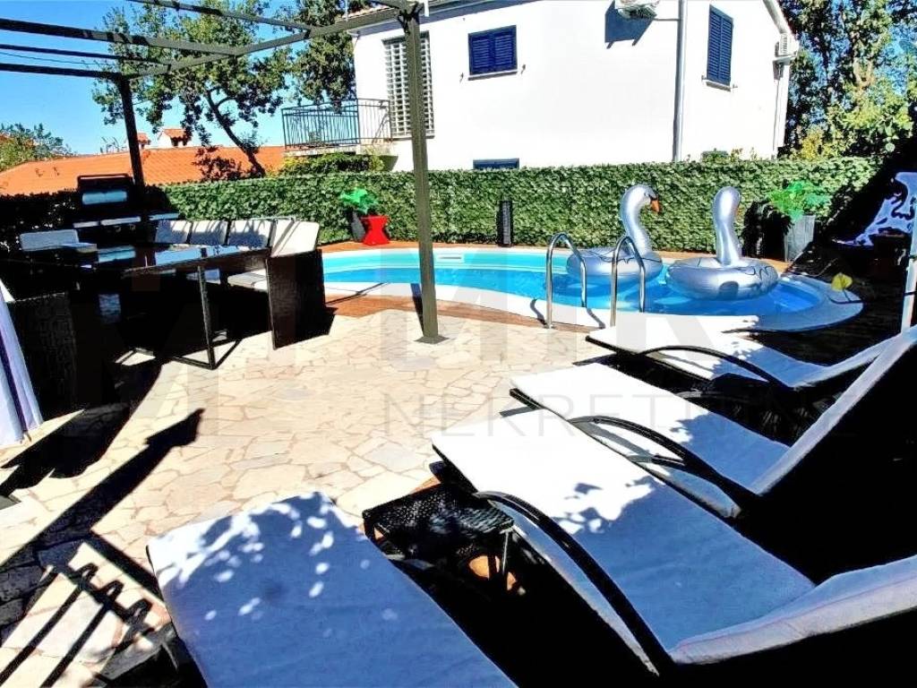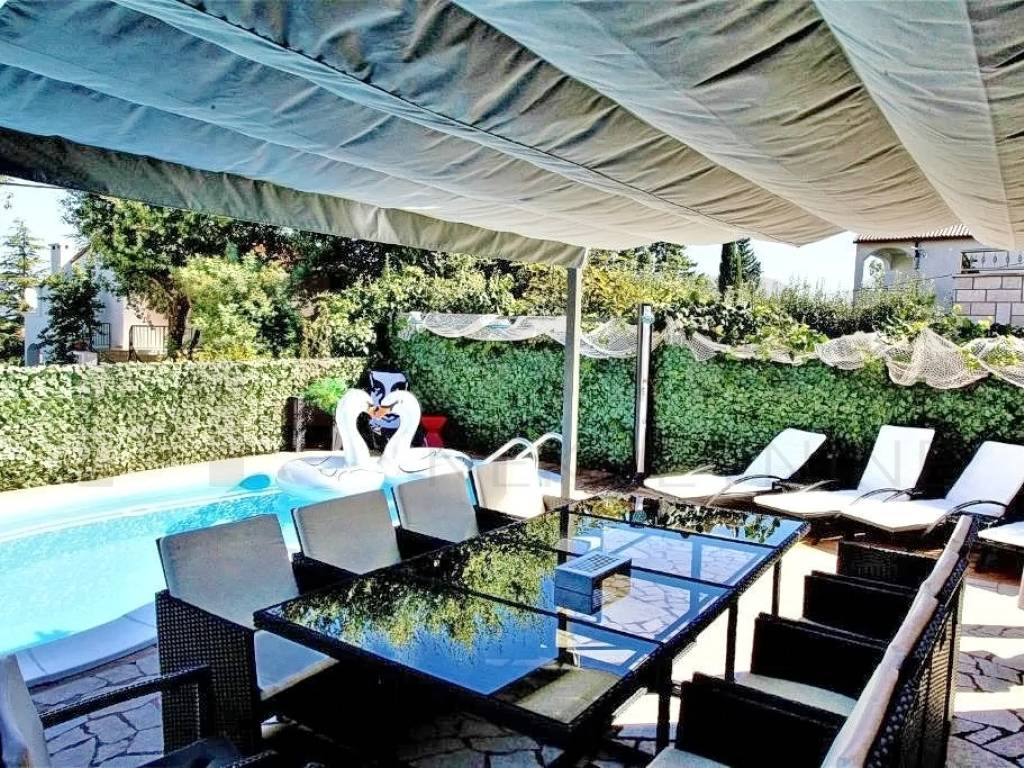 Die Insel Krk, Malinska, ein komplett renoviertes Doppelhaus zum Verkauf, 70 m vom Meer entfernt. Das Haus hat eine Gesamtfläche von 193 m2. Es besteht aus einem Keller, Erdgeschoss und Obergeschoss. Der Keller dient der Lagerung. Im Erdgeschoss befinden sich eine Küche, ein Esszimmer mit Wohnzimmer, ein Flur, zwei Badezimmer, ein Schlafzimmer und ein Abstellraum. Im ersten Stock befinden sich drei Schlafzimmer, zwei Badezimmer, ein Flur und ein Balkon. Das Haus ist schön und geschmackvoll eingerichtet und bezugsfertig. Auf dem Gelände des oben genannten Grundstücks befindet sich ein wunderschön angelegter Garten mit Swimmingpool, Liegewiese und Whirlpool. Parkplätze sind auch im Garten vorhanden. Die Immobilie ist Eigentum einer natürlichen Person und im Namen der Übertragung ist der Käufer des Hauses verpflichtet, eine Immobilienumsatzsteuer in Höhe von 3 % zu zahlen. Der Eigentümer des Hauses garantiert den ordnungsgemäßen Besitz und die technische Dokumentation. Besuchen Sie uns und finden Sie die Quadratmeterzahl Ihres Hauses!