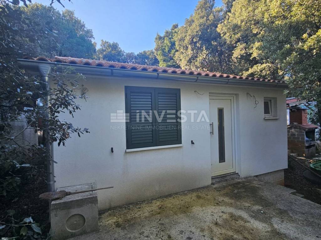 In der Umgebung von Marčana, nur 80 m vom Meer entfernt, wird ein neues Ferienhaus mit 39 m² und einer Terrasse von ca. 16 m² auf einem Grundstück von insgesamt 216 m² zum Verkauf angeboten. Das Ferienhaus wurde aus Ziegeln gebaut und mit Dachziegeln gedeckt, die Fassade ist isoliert und es wurde neue PVC-Fenster mit ALU-Rollläden eingebaut. Der Innenraum des Ferienhauses ist noch nicht eingerichtet und besteht aus zwei Zimmern und einem Bad mit WC, das mit einem eigenen Abwassertank verbunden ist, der sich hinter dem Ferienhaus befindet. Vor dem Eingang befindet sich eine große Terrasse von 16 m², unter der sich ein Abstellraum und ein gemauerter Betontank mit einem Volumen von 10 m³ im Keller befinden.