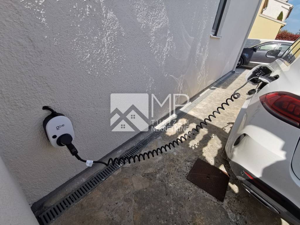 Das Haus bietet eine Wohnfläche von 180 m² und liegt auf einem 599 m² großen, gärtnerisch gestalteten Grundstück. Im Garten befinden sich ein privater Pool (6 × 3 m), eine Pergola, eine Solardusche, Liegestühle und ein Entspannungsbereich – ideal für die Sommermonate.