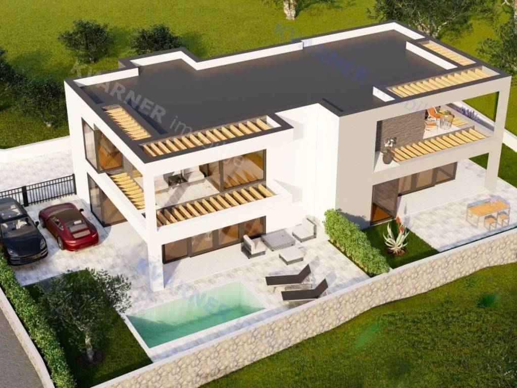 Einfamilienhaus mit zwei Wohneinheiten, Gesamtwohnfläche von 360m2, Das Haus hat separate Eingänge und eignet sich zum Wohnen und Vermieten. Es ist wichtig zu beachten, dass das Haus über einen Keller verfügt, der für Wellness- und Spa-Programme genutzt werden kann, die die beste Art der Entspannung sein können. Auf der Außenseite des Gartens gibt es einen Swimmingpool mit Sonnendeck und vier Parkplätze. Voraussichtlicher Abschluss der Arbeiten im Sommer 2022.