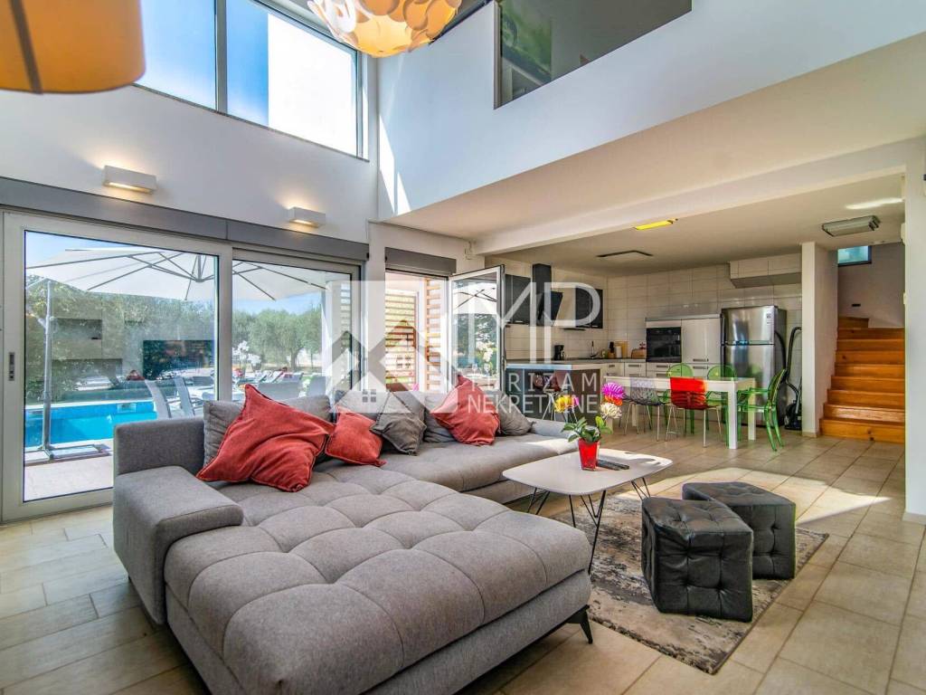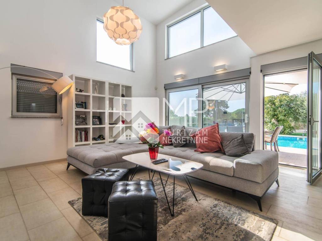 Diese Villa vereint Luxus, Privatsphäre und Funktionalität und ist ideal für Familien oder als erfolgreiche Ferienimmobilie. Moderne Architektur, großzügige Innenräume, Swimmingpool und Garten machen sie zu einer wahren Oase an der istrischen Küste.