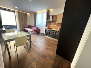 Die Gesamtfläche der Wohnung beträgt 54 m² und besteht aus einem Eingangsflur, Badezimmer, einem Schlafzimmer sowie einem offenen Wohnbereich mit Küche und Esszimmer, mit Zugang zu einer geräumigen Terrasse. Zur Wohnung gehört ein Außenstellplatz. Die Wohnung ist modern mit einer stilvollen Küche ausgestattet. Das Badezimmer verfügt über eine Walk-in-Dusche mit Fußbodenheizung. Die Beheizung und Kühlung aller Räume erfolgt über Klimaanlagen, zusätzlich gibt es eine Fußbodenheizung im Badezimmer.