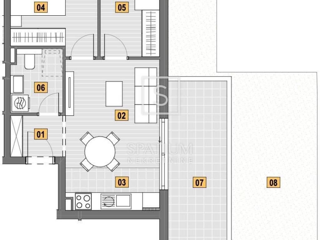 SENJ bietet Ihnen eine Wohnung in einem Neubau in bester Lage, zentrumsnah und in Meeresnähe. Die hochwertige Bauweise entspricht höchsten Energieeffizienzstandards. Das modern gestaltete Gebäude erstreckt sich über drei Obergeschosse und umfasst insgesamt 31 Wohneinheiten. Im Untergeschoss befinden sich 31 Abstellräume, im Erdgeschoss 10 Garagen und rund um das Gebäude 21 Parkplätze. Zur Ausstattung gehören: Aufzug, dreilagige PVC-Fenster und -Türen mit elektrischen Rollläden, Wärmedämmung und Fassade, Keramikfliesen, großformatige Feinsteinzeugfliesen, hochwertige Sanitäreinrichtungen, ebenerdige Duschen, erstklassiges Eichenparkett, Heiz- und Kühlsystem mit Daikin-Wärmepumpe und Gebläsekonvektoren sowie separate Strom- und Wasserzähler. Die 61,12 m² große Wohnung befindet sich im ersten Obergeschoss und besteht aus Flur, Küche, Wohn- und Esszimmer, zwei Schlafzimmern, Badezimmer und Balkon. Die Fertigstellung ist für den 1. August 2026 geplant, der Bezug ist dann möglich. Die Immobilie unterliegt der Mehrwertsteuer, der Käufer zahlt jedoch keine Grundsteuer. Senj ist die älteste Stadt an der oberen Adria und wurde vor etwa 3000 Jahren in vorrömischer Zeit gegründet (Senia). Sie war das Hauptzentrum des illyrischen Stammes der Japoden. Die heutige Siedlung liegt am Fuße der Ausläufer von Kapela und Velebit. Das Wahrzeichen der Stadt, die Festung Nehaj, auch bekannt als „Nehaj-Turm“, befindet sich auf dem Hügel Trbušnjak, oft auch Nehaj genannt. Sie wurde 1558 fertiggestellt und ist seither Sitz der Stadt Uskok. Senj ist die größte städtische Agglomeration an der kroatischen Küste zwischen Rijeka und Zadar. Das Stadtgebiet erstreckt sich über eine 76 km lange Küstenlinie und liegt zwischen dem Meer, den Ausläufern von Kapela und Velebit, dem höchsten Gebirge Kroatiens. Durch seine Lage an der Ostküste der Adria ist Senj über das Meer mit den Städten und Ländern des Mittelmeers verbunden. Für weitere Informationen kontaktieren Sie uns bitte. Mislav Smolčić Maklerassistent +385 91 500 6757 mislav@spatium.hr Vesna Smolčić lizenzierter Agent +385 91 571 7682 vesna@spatium.hr Spatium nekretnine +385 51 452 479 info@spatium.hr
