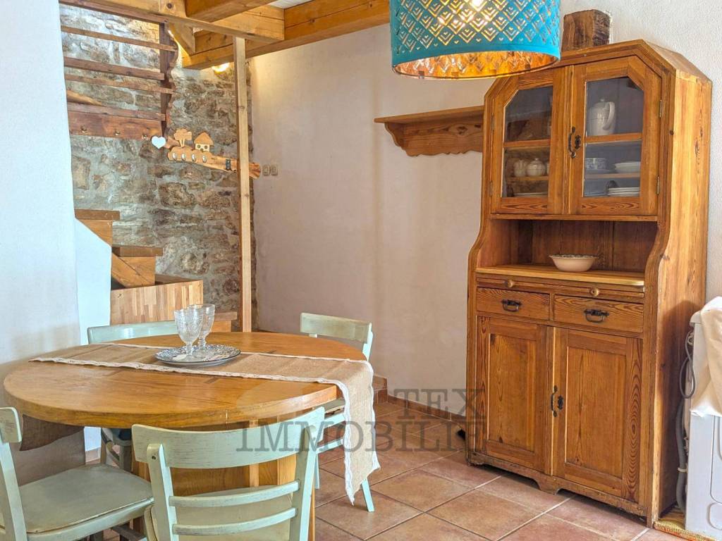 Im Erdgeschoss befindet sich eine geräumige Küche, ein Esszimmer, ein Badezimmer und eine überdachte Terrasse. Im ersten Stock gibt es ein Wohnzimmer mit Zugang zum Garten und einer überdachten Terrasse. Im zweiten Stock befindet sich ein großes Schlafzimmer.