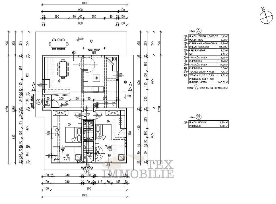 Diese Einheit verfügt über zwei geräumige Schlafzimmer, einen Flur, ein WC, zwei Badezimmer, eine voll ausgestattete Küche mit Esszimmer sowie ein geräumiges Wohnzimmer mit Zugang zu einer großen Terrasse mit direktem Zugang zu einem privaten Pool (13,5 x 3,5 m).