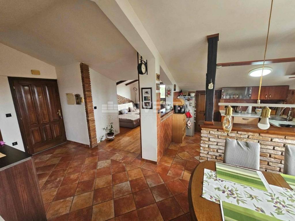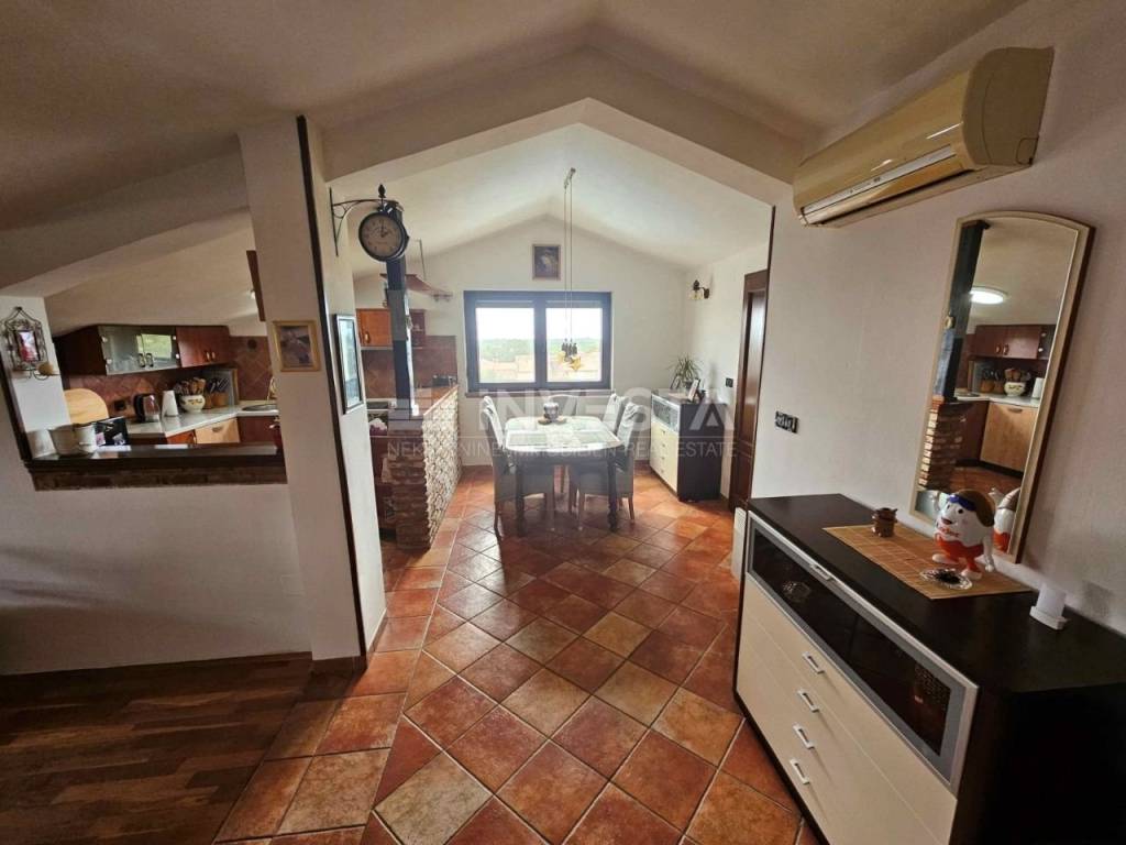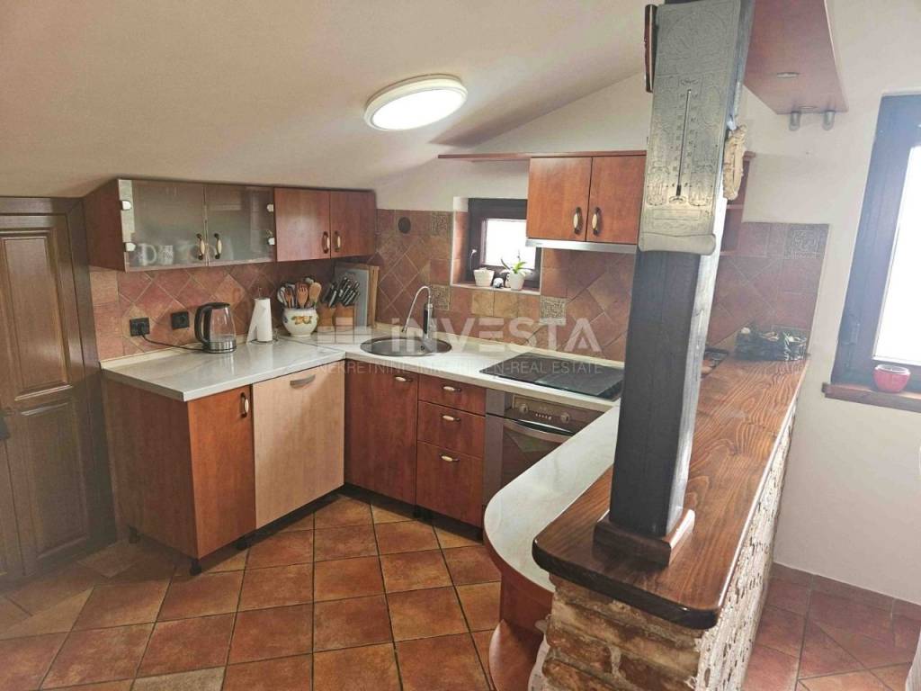 Wenn Sie einen Raum mit Seele suchen, nicht nur Quadratmeter, könnte Sie diese Wohnung in der ruhigen Umgebung von Poreč auf den ersten Blick begeistern. Sie befindet sich im dritten Stock eines Hauses, weit entfernt vom städtischen Lärm, und bietet einen offenen Blick auf das Meer und die umliegende Landschaft – eine Aussicht, die man nicht nur nebenbei betrachtet, sondern wirklich genießt.