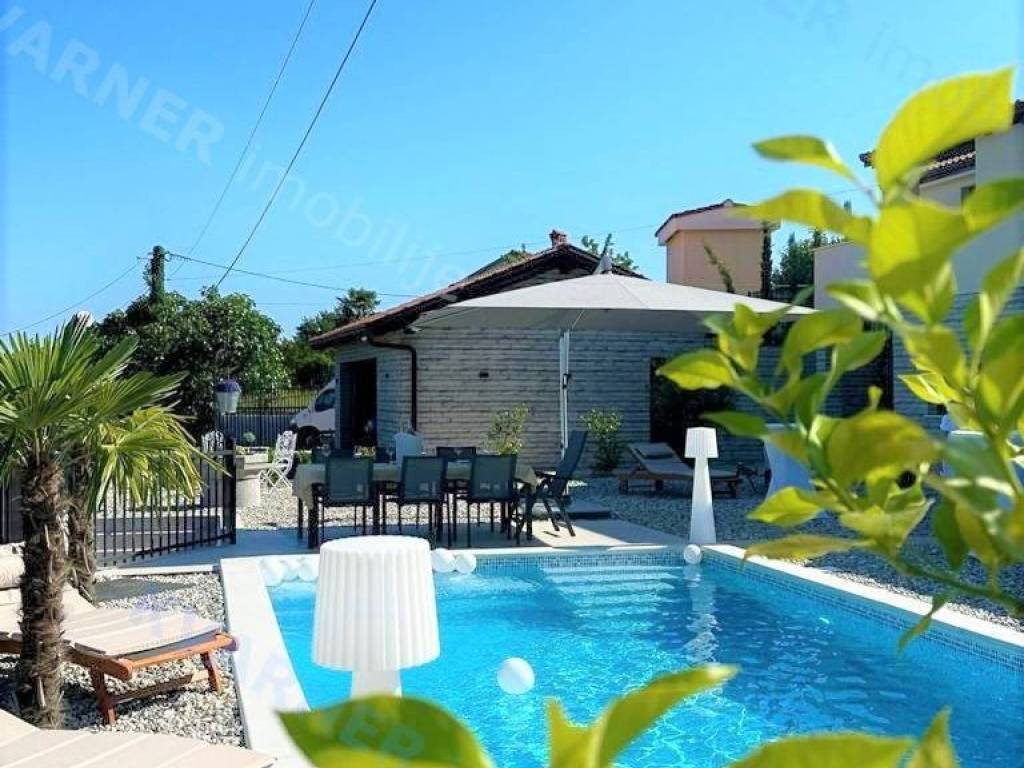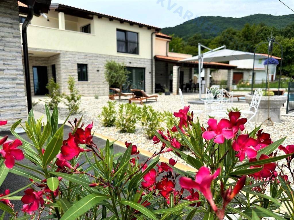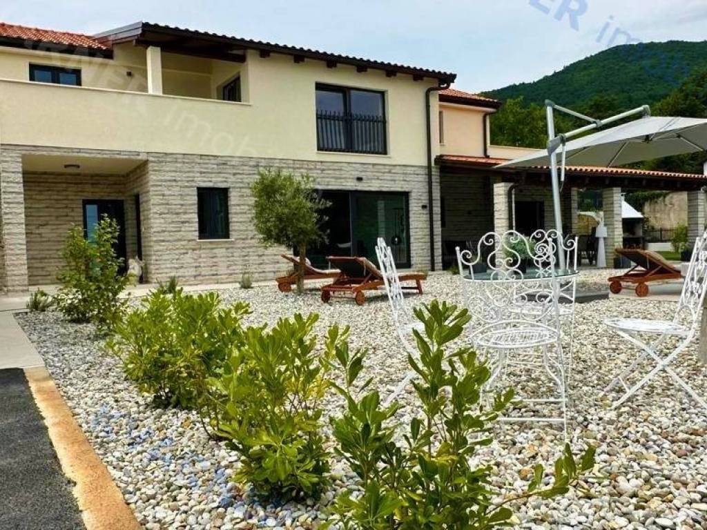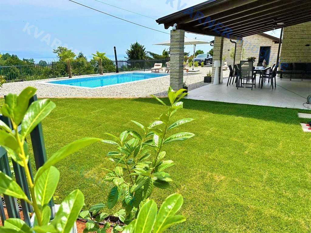 In der Umgebung von Opatija wird eine Villa mit atemberaubendem Meerblick an einem ruhigen Ort zum Verkauf angeboten, umgeben von mediterranem Wald und Grünflächen. Die Villa liegt auf einem wunderschön angelegten Grundstück von 870 m² und verfügt über einen großen beheizten Swimmingpool, einen Kinderspielplatz, eine überdachte Terrasse von 24 m² und einen Holzofen. Das Erdgeschoss besteht aus einem Schlafzimmer mit eigenem Bad, einem WC und einem geräumigen Wohnzimmer, Essbereich und Küche, die zur überdachten Terrasse und zum Garten führen. Im ersten Stock befinden sich drei Schlafzimmer, jedes mit eigenem Bad und Balkonen mit herrlichem Blick auf das Meer, die umliegende Vegetation und den Wald. Heizung und Kühlung erfolgen über Klimaanlagen (über Wi-Fi gesteuert); das gesamte Haus verfügt über Fußbodenheizung, und im Essbereich gibt es einen Pelletofen. Die Villa verfügt über 3 Solarkollektoren mit einem 400-Liter-Wassererhitzer für Warmwasser und ist mit einer Videoüberwachungs- und Alarmanlage ausgestattet. Der Pool ist mit einer Wasserheizungsanlage mit Wärmepumpe ausgestattet. Mediterrane Pflanzen und Rasen im Garten werden von einem intelligenten Bewässerungssystem gepflegt. Eine ferngesteuerte Garage und Waschküche sowie Parkplätze für bis zu 10 Fahrzeuge sind ein integraler Bestandteil dieser wunderschönen rustikalen Villa.