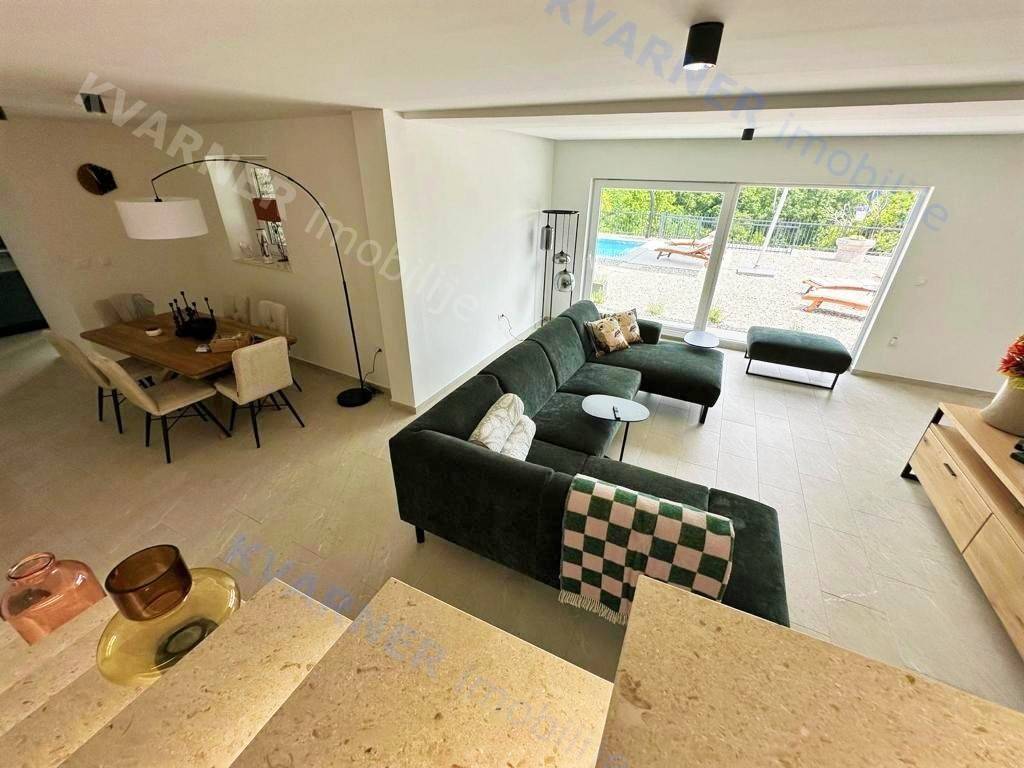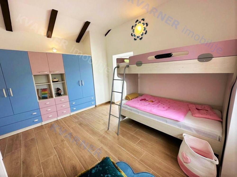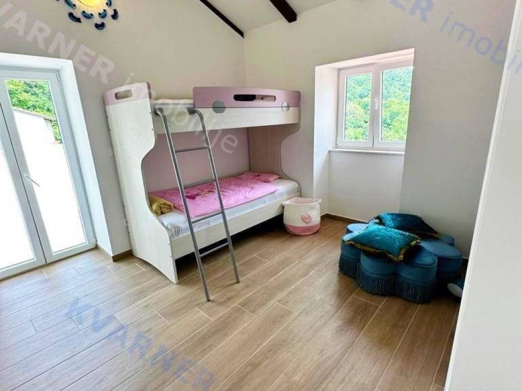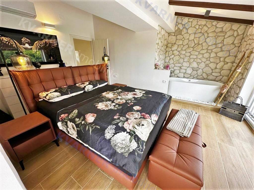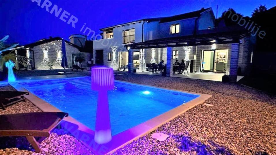 In der Umgebung von Opatija wird eine Villa mit atemberaubendem Meerblick an einem ruhigen Ort zum Verkauf angeboten, umgeben von mediterranem Wald und Grünflächen. Die Villa liegt auf einem wunderschön angelegten Grundstück von 870 m² und verfügt über einen großen beheizten Swimmingpool, einen Kinderspielplatz, eine überdachte Terrasse von 24 m² und einen Holzofen. Das Erdgeschoss besteht aus einem Schlafzimmer mit eigenem Bad, einem WC und einem geräumigen Wohnzimmer, Essbereich und Küche, die zur überdachten Terrasse und zum Garten führen. Im ersten Stock befinden sich drei Schlafzimmer, jedes mit eigenem Bad und Balkonen mit herrlichem Blick auf das Meer, die umliegende Vegetation und den Wald. Heizung und Kühlung erfolgen über Klimaanlagen (über Wi-Fi gesteuert); das gesamte Haus verfügt über Fußbodenheizung, und im Essbereich gibt es einen Pelletofen. Die Villa verfügt über 3 Solarkollektoren mit einem 400-Liter-Wassererhitzer für Warmwasser und ist mit einer Videoüberwachungs- und Alarmanlage ausgestattet. Der Pool ist mit einer Wasserheizungsanlage mit Wärmepumpe ausgestattet. Mediterrane Pflanzen und Rasen im Garten werden von einem intelligenten Bewässerungssystem gepflegt. Eine ferngesteuerte Garage und Waschküche sowie Parkplätze für bis zu 10 Fahrzeuge sind ein integraler Bestandteil dieser wunderschönen rustikalen Villa.