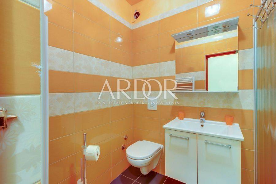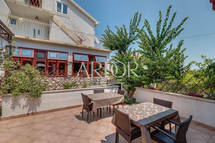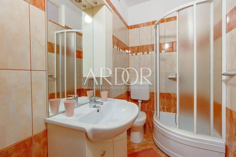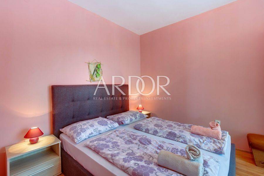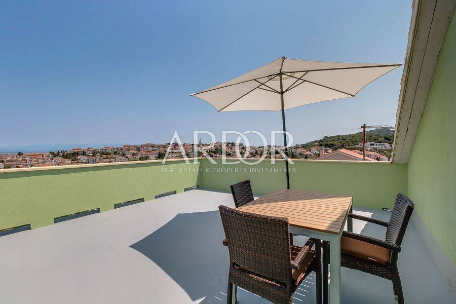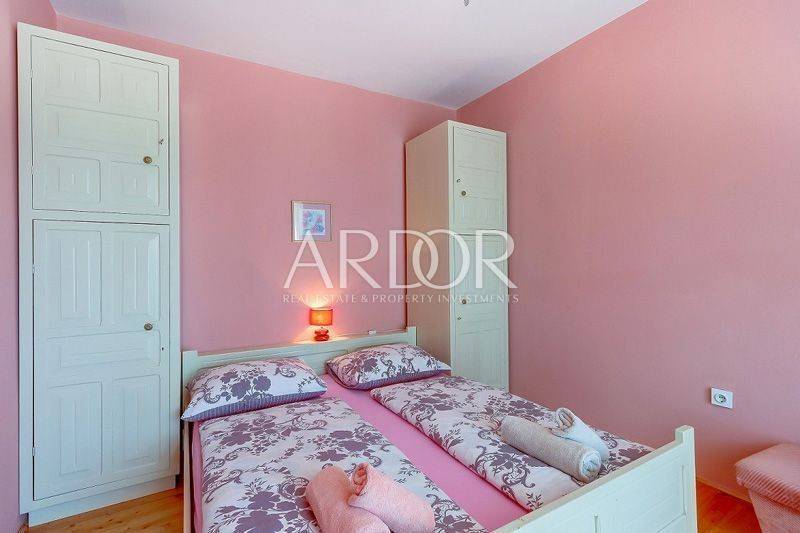 Mali Lošinj, in friedlicher und ruhiger Lage, nur 500 Meter von der berühmten Bucht Čikat entfernt, steht eine Villa mit 9 modern ausgestatteten und klimatisierten Zimmern und 5 Apartments für zwei oder fünf Personen zum Verkauf. Auf einem Grundstück von 1200 m2 befindet sich ein wunderschönes und gepflegtes Anwesen mit 825 m2 und eigenem Stellplatz für bis zu 14 Fahrzeuge. Es ist von einem Pinienwald umgeben und bietet einen wunderschönen Blick auf die Stadt Mali Lošinj. Die große, von mediterranen Pflanzen umgebene Terrasse und die Balkone mit freiem Blick auf die Stadt und das Meer werden Sie sicher nicht gleichgültig lassen. Das Objekt verzeichnet eine hervorragende Auslastung während der Sommermonate, aber auch in der Vor- und Nachsaison und eignet sich ideal als touristisches Investment.