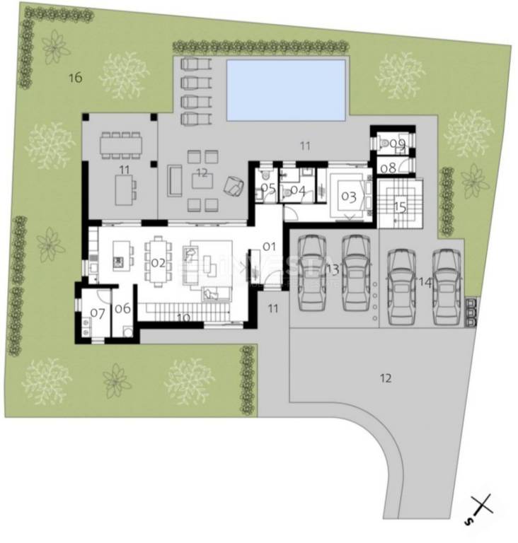 In einem ruhigen Teil der Gemeinde Medulin, nur 50 Meter vom Meer entfernt, befindet sich diese außergewöhnlich geräumige und architektonisch beeindruckende moderne Villa, die auf höchsten Komfort, Privatsphäre und Luxus ausgelegt ist.