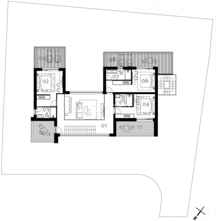 Ein besonderes Highlight dieser Villa ist die Dachterrasse im dritten Stock, mit einer Gesamtfläche von 140,9 m² (berechnet 35,2 m²), konzipiert als privater Rooftop-Lounge. Dieser Bereich bietet einen spektakulären Panoramablick auf das Meer und die Umgebung und ist der ideale Ort zum Sonnenbaden, für abendliche Zusammenkünfte und ein vollständiges mediterranes Ambiente.