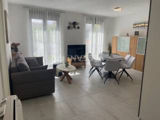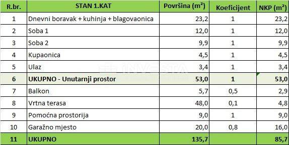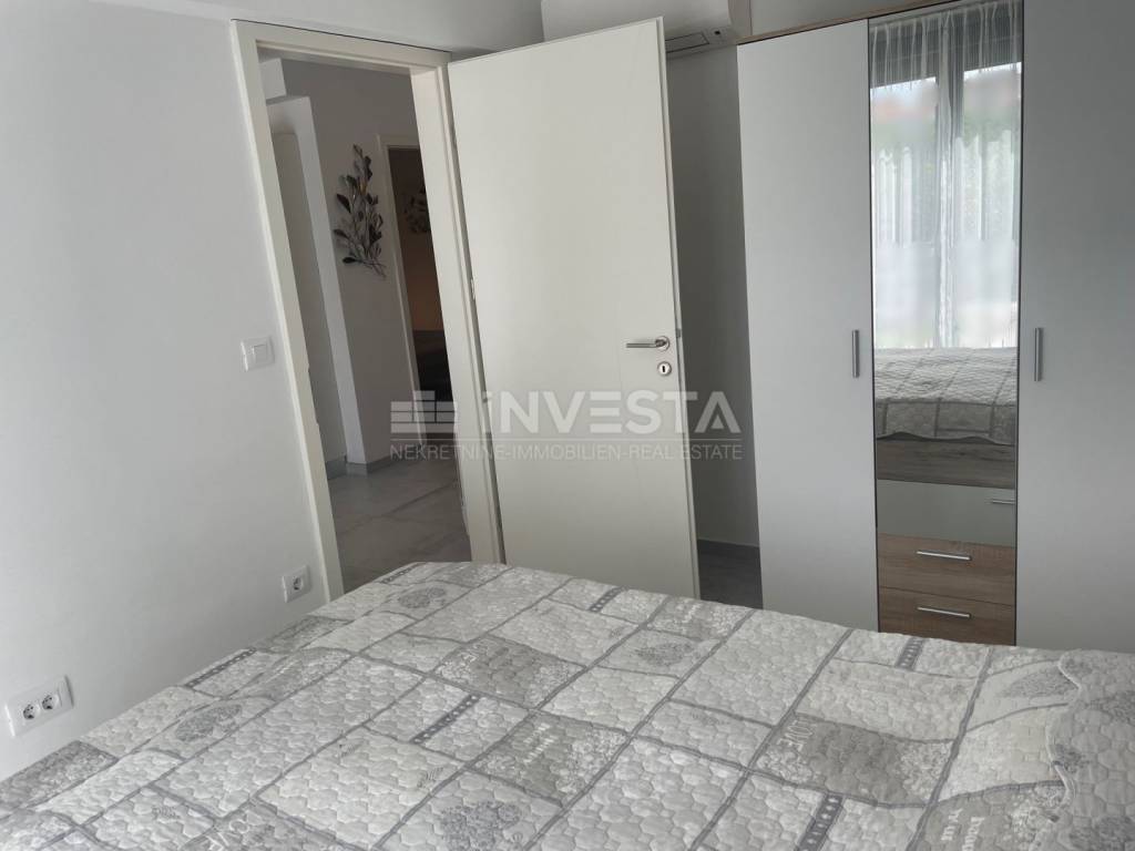 Eine neue Wohnung im ersten Stock eines Neubaus mit Balkon steht zum Verkauf – Pula, 55,9 m² (netto) mit einem gepflegten Garten, inklusive einem Nebengebäude und einem Stellplatz.