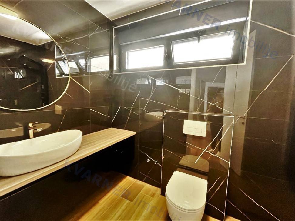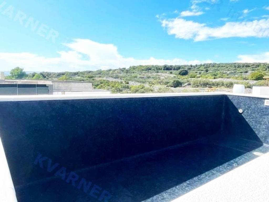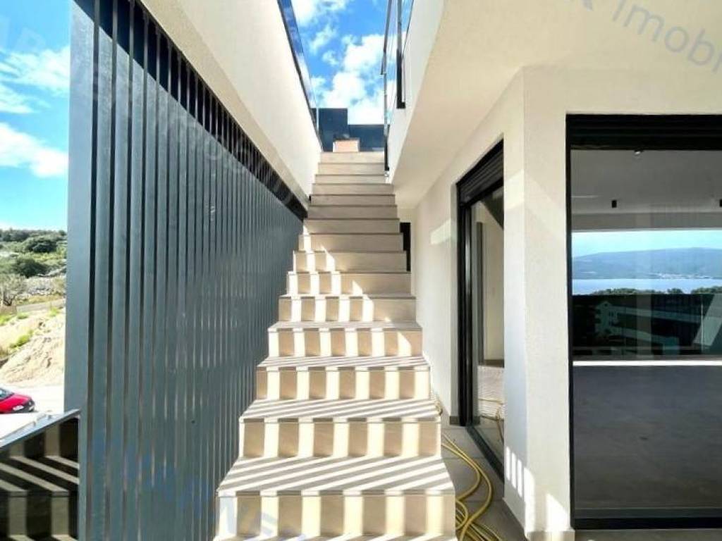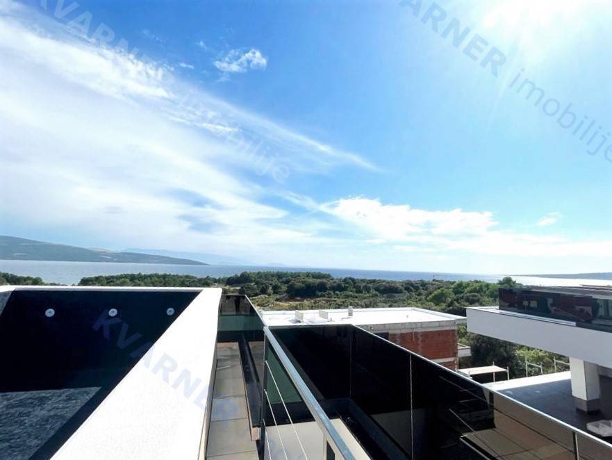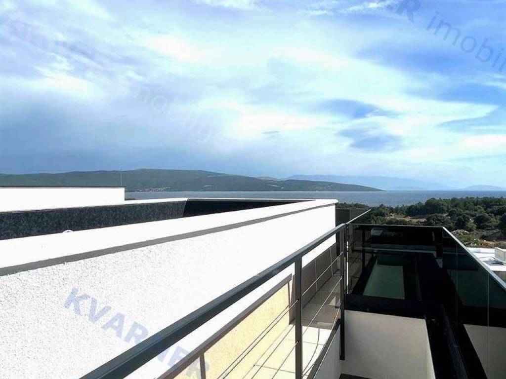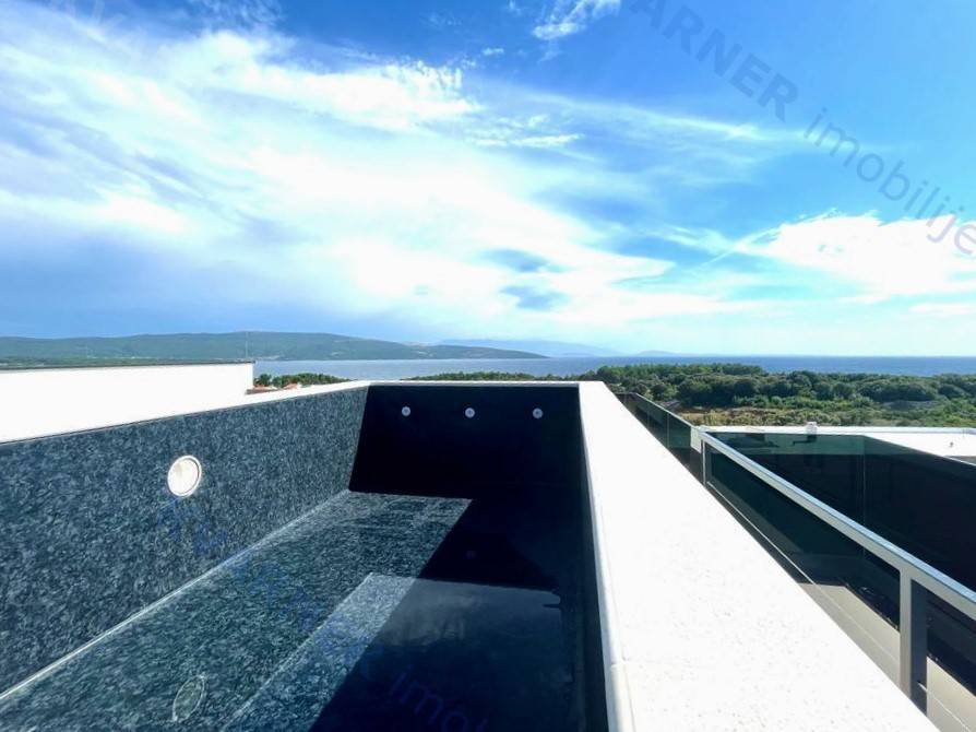 Eine zeitgenössische und luxuriöse zweistöckige Wohnung steht zum Verkauf in der Stadt Krk, in einer ruhigen Umgebung und dennoch in der Nähe aller notwendigen Annehmlichkeiten. Die Wohnung ist nur 600 m vom Meer entfernt. Mit einer Wohnfläche von 160 m² erstreckt sich die Wohnung über das erste und zweite Stockwerk einer städtischen Villa mit insgesamt 4 Wohnungen. Eine Außentreppe führt in das erste Stockwerk, wo Sie einen Eingangsbereich und drei Schlafzimmer finden, von denen eines ein eigenes Badezimmer hat und zwei Zugang zu einem überdachten Balkon mit einem wunderschönen Meerblick haben. Innentreppen führen vom ersten in das zweite Stockwerk, wo Sie eine Toilette, eine Küche, einen Essbereich und ein Wohnzimmer mit Zugang zu einer überdachten Terrasse mit Blick auf das Meer finden. Auf dem Dach des Gebäudes befindet sich ein offener Bereich von 60 m² mit einem 16 Quadratmeter großen Pool, einem Sonnenbereich und einem angrenzenden Technikraum. Bei der Konstruktion wurden hochwertige Materialien und erstklassige Ausstattung verwendet. Die Wohnung wird im Sommer 2023 bezugsfertig sein.