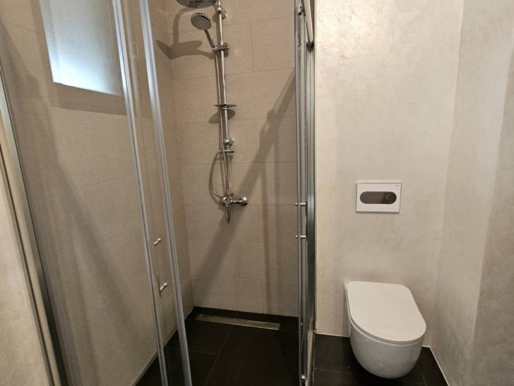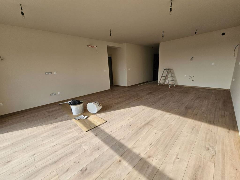 Die Wohnung verfügt über eine große Glaswand, die den Balkon ersetzt, und ist mit einem modernen elektrischen System zum automatischen Öffnen ausgestattet.