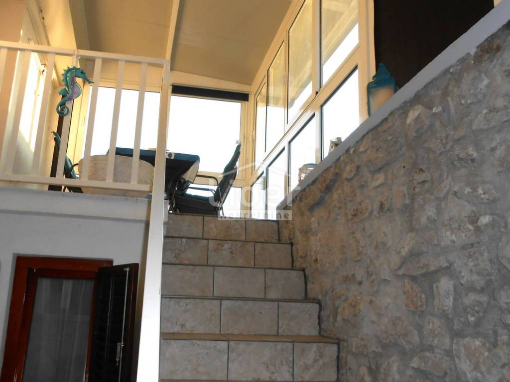 CRIKVENICA Wir verkaufen ein freistehendes Haus von 60 m2 mit einem Garten von 141 m2 mit einem schönen Meerblick, gelegen in einem kleinen, sehr ruhigen Dorf oberhalb des Zentrums von Crikvenica. Der Zugang zum Haus erfolgt über einen kleinen Bürgersteig, in dem sich mehrere komplett renovierte Steinhäuser befinden. Ein kleines Paradies für Liebhaber von Ruhe und Frieden. Dieses besondere Haus hat den Geist seiner früheren Bauweise beibehalten, wurde aber vor kurzem komplett renoviert und an die Bedürfnisse seiner Besitzer angepasst.