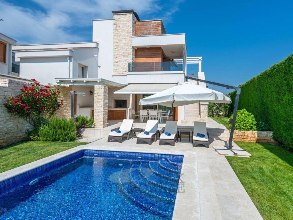 Diese außergewöhnliche Luxusvilla wurde im Jahr 2014 auf einem wunderschön angelegten Grundstück von 700 m² erbaut. Mit einer Wohnfläche von 169 m², verteilt auf zwei Etagen, vereint diese Immobilie elegantes Design, moderne Technik und den entspannten Charme des istrischen Lebensstils.