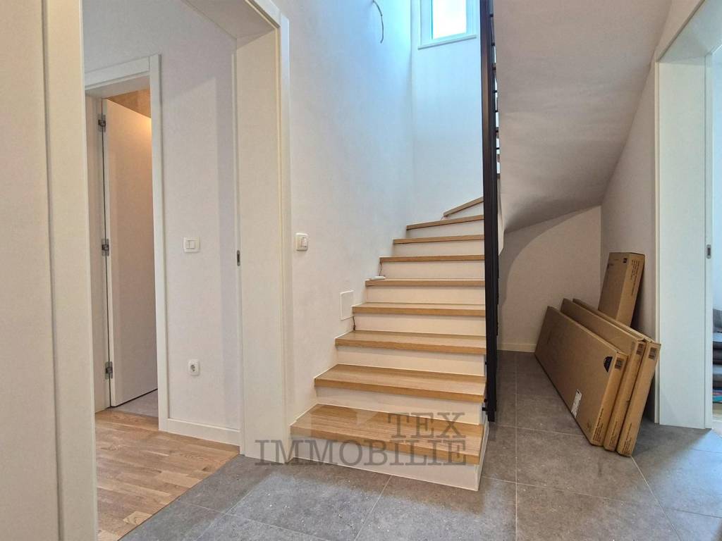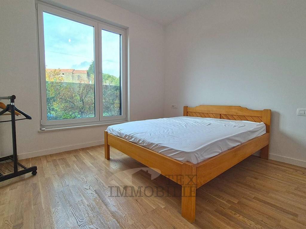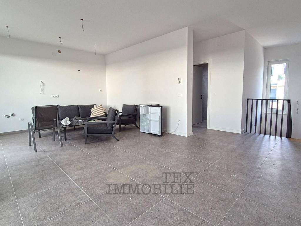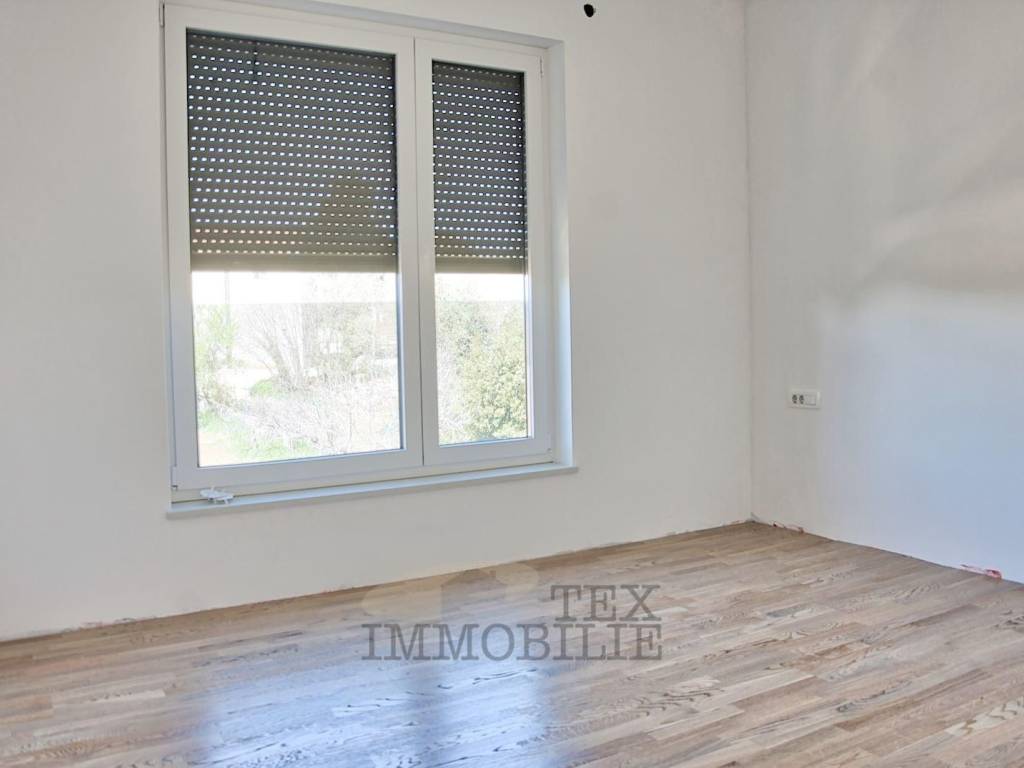 Eine neue Wohnung im Bau steht in der Stadt Tar in der Nähe von Poreč, 3 km vom Meer entfernt, zum Verkauf. Das Gebäude ist als Mehrfamilienhaus mit insgesamt 4 Wohneinheiten geplant. Die zweistöckige Wohnung im ersten Stock besteht aus einem Flur, einer Toilette, einem Schlafzimmer mit Badezimmer und einem Arbeitszimmer/Garderobe. Im zweiten Stock befinden sich zwei weitere Schlafzimmer, ein gemeinsames Badezimmer, ein geräumiges Wohnzimmer mit Küche und Esszimmer und eine überdachte Terrasse von 20,42 m². Im Keller des Gebäudes gibt es einen Abstellraum von 7,67 m². Es gibt einen Parkplatz.