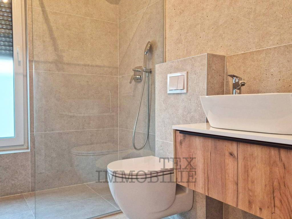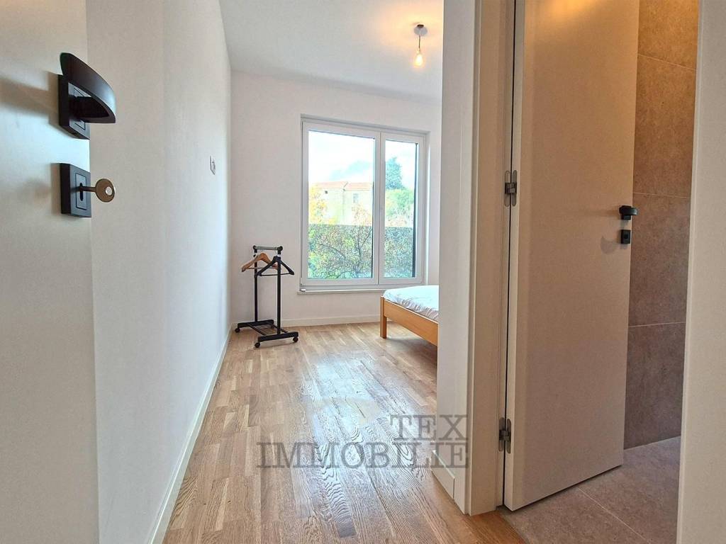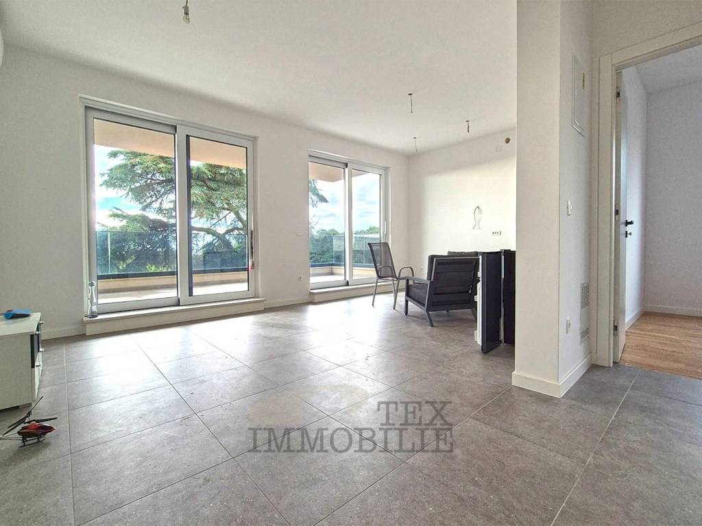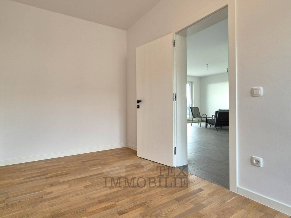 Eine neue Wohnung im Bau steht in der Stadt Tar in der Nähe von Poreč, 3 km vom Meer entfernt, zum Verkauf. Das Gebäude ist als Mehrfamilienhaus mit insgesamt 4 Wohneinheiten geplant. Die zweistöckige Wohnung im ersten Stock besteht aus einem Flur, einer Toilette, einem Schlafzimmer mit Badezimmer und einem Arbeitszimmer/Garderobe. Im zweiten Stock befinden sich zwei weitere Schlafzimmer, ein gemeinsames Badezimmer, ein geräumiges Wohnzimmer mit Küche und Esszimmer und eine überdachte Terrasse von 20,42 m². Im Keller des Gebäudes gibt es einen Abstellraum von 7,67 m². Es gibt einen Parkplatz.