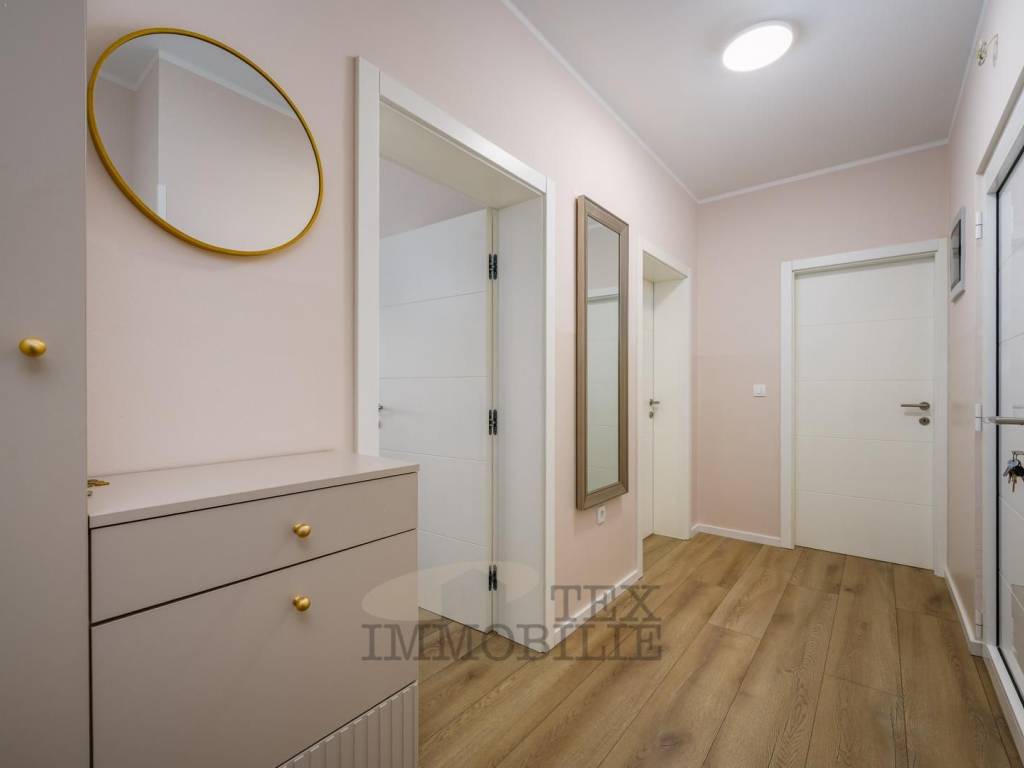 In den Badezimmern und im Wohnbereich ist elektrische Fußbodenheizung installiert, und in allen Räumen befinden sich Klimaanlagen. Zur Wohnung gehören außerdem ein Abstellraum im Erdgeschoss (6,68 m²) sowie zwei Parkplätze.