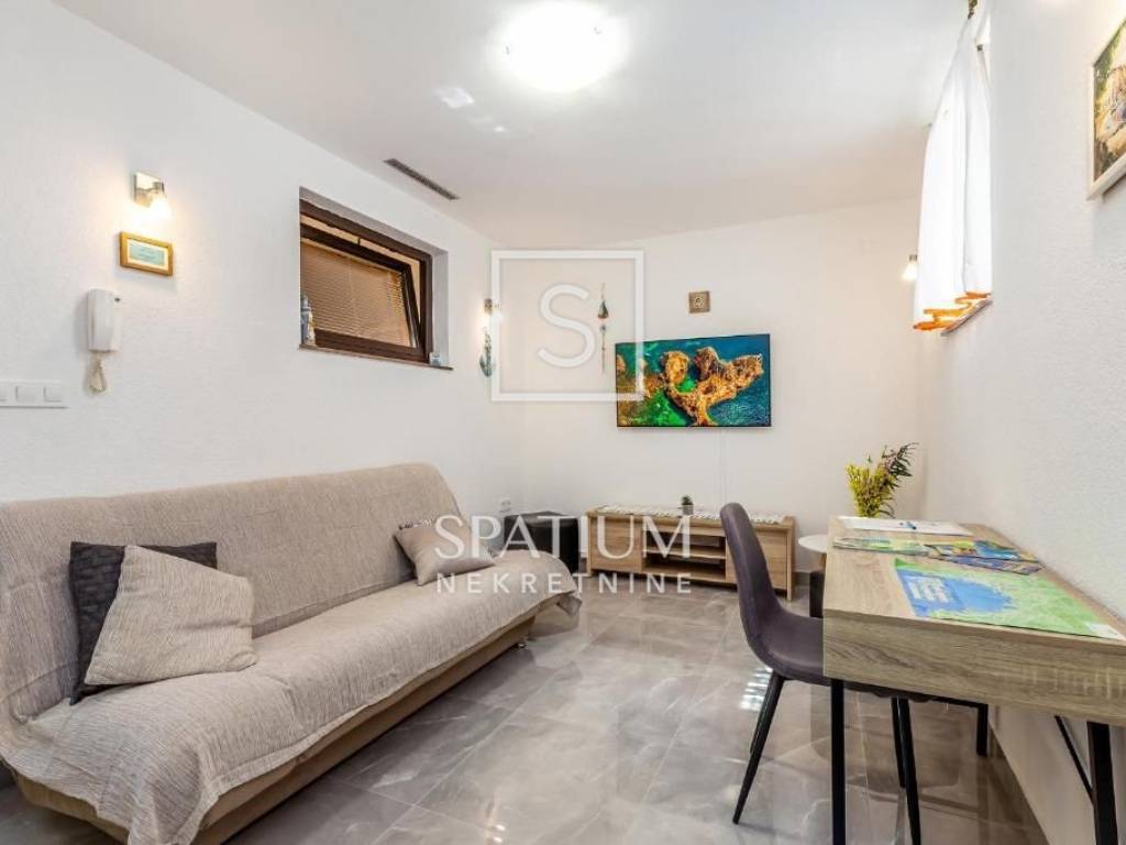 MALINSKA, wir haben eine Einzimmerwohnung mit einer Gartenfläche von 37 m2 mit schönem Garten erhalten. Es befindet sich im Untergeschoss des Gebäudes und besteht aus einem Badezimmer, einem Schlafzimmer, einer Küche, einem Esszimmer und einem Wohnzimmer. Auf dem ca. 80 m2 großen Grundstück gibt es einen Holzpavillon, in dem Sie den größten Teil des Jahres verbringen können. Die Anlage verfügt über einen Parkplatz. Aufgrund seiner Mikrolage eignet sich diese Immobilie sowohl für touristische Aktivitäten als auch für langfristiges Wohnen.