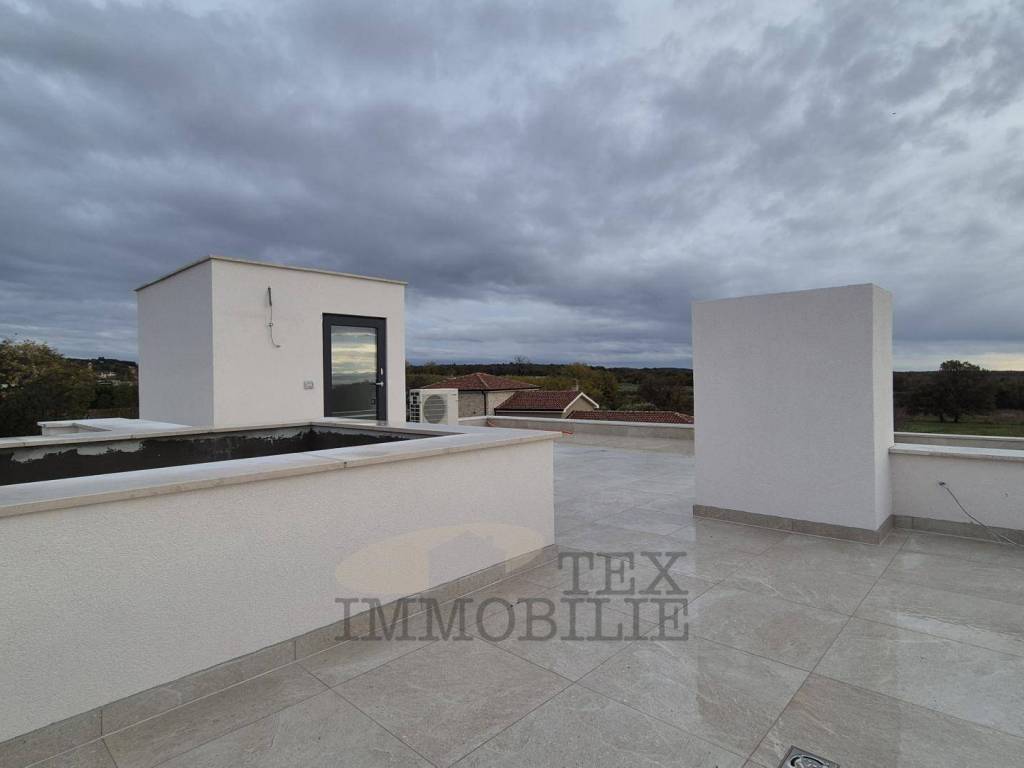 Zum Verkauf steht eine moderne Villa mit Pool und atemberaubendem Meerblick, nur 8 Kilometer von der Küste und 10 Kilometer vom Zentrum von Poreč entfernt.