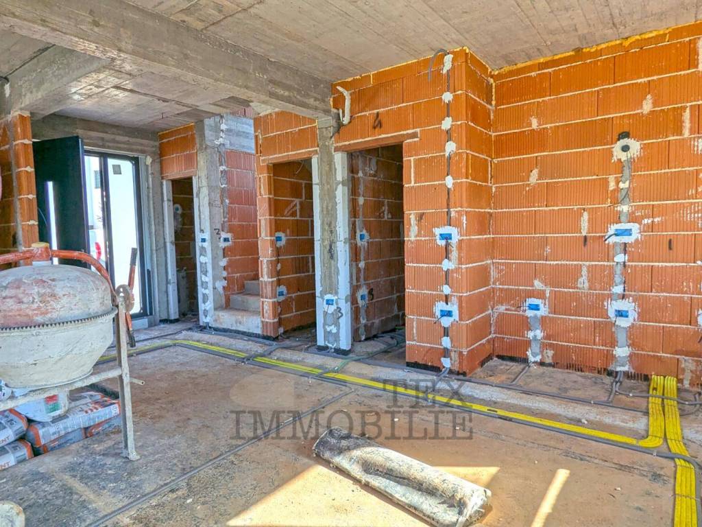 Im Erdgeschoss befinden sich ein geräumiger Eingangsbereich, ein Wohnzimmer, eine Küche mit Essbereich, eine überdachte Terrasse, ein Gäste-WC, zwei Abstellräume und ein Heizraum.
