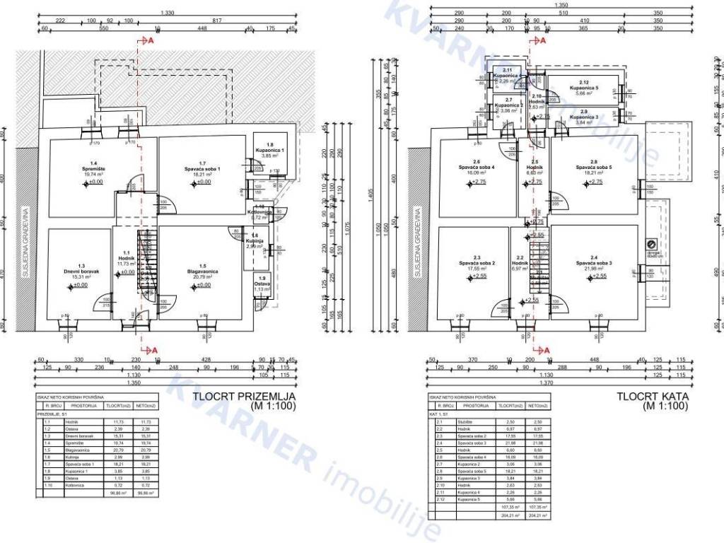 Insel Krk - Malinska Zum Verkauf steht ein attraktives Doppelhaus mit 220 m², gelegen im Zentrum von Malinska, nur 80 Meter vom Meer entfernt! Das Haus befindet sich auf einem 360 m² großen Grundstück und besteht aus Erdgeschoss und Obergeschoss mit großzügigen Räumen und durchdachtem Grundriss.