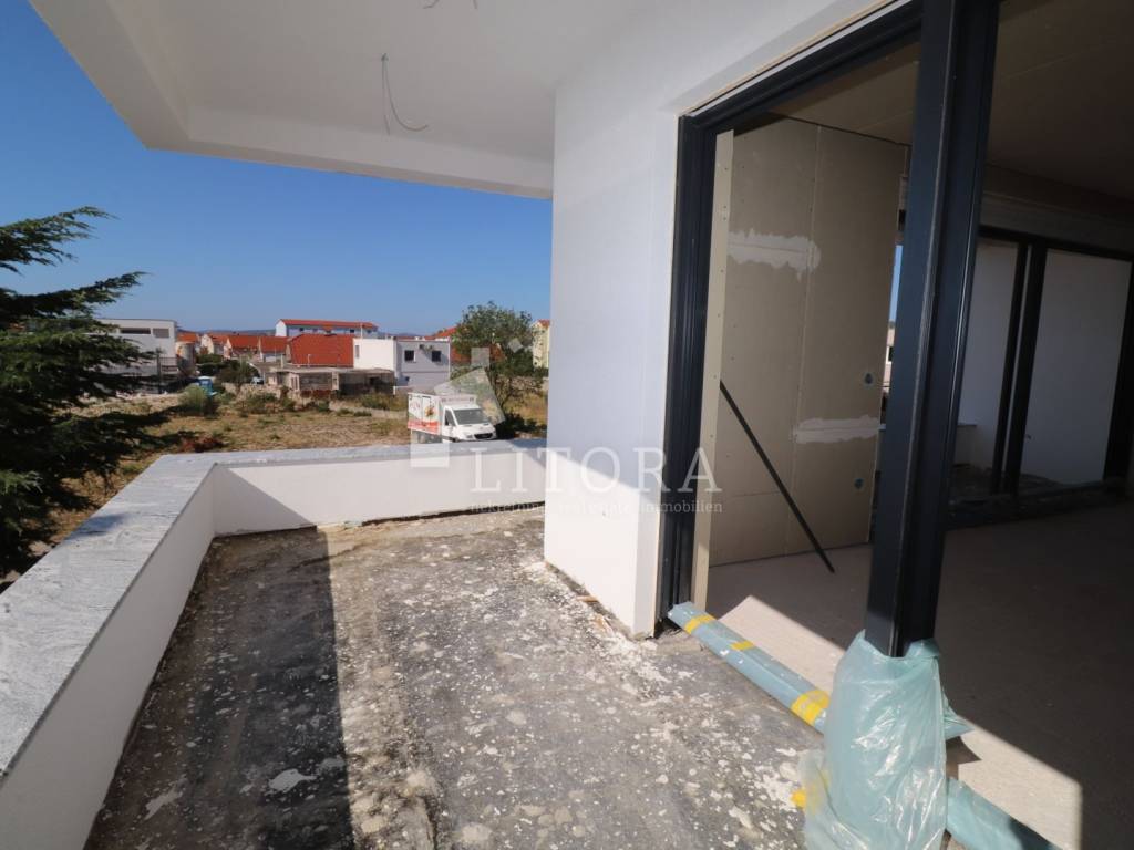 Vodice eine moderne Neubauwohnung im ersten Stock eines kleinen Mehrfamilienhauses in ruhiger Lage in Vodice. Die Gesamtwohnfläche beträgt 84,68 m² und umfasst zwei Schlafzimmer, ein Badezimmer, ein zusätzliches WC, einen Flur sowie ein offenes Wohnkonzept mit Wohnzimmer, Küche und Essbereich, von dem aus man auf eine überdachte Terrasse mit freiem Ausblick gelangt. Ein Außenstellplatz ist im Preis inbegriffen. Der Strand ist 700 Meter entfernt, das Stadtzentrum 1.150 Meter. Das Gebäude wird nach modernen Baustandards mit hochwertigen Materialien und Fokus auf Energieeffizienz errichtet. Die Fertigstellung und der Einzug sind bis Sommer 2026 geplant. Käufern wird die Möglichkeit geboten, die Innenausstattung nach eigenen Wünschen mitzugestalten. Ideal als fester Wohnsitz, Feriendomizil oder zur touristischen Vermietung.