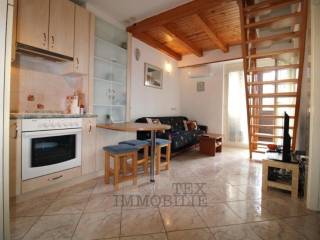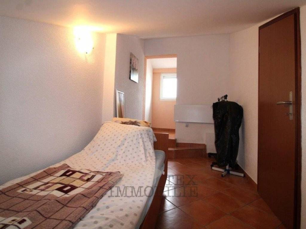 Die untere Ebene besteht aus einem Wohnzimmer mit Küche und Essbereich, einem Schlafzimmer, einem Badezimmer sowie einer Loggia, die einen angenehmen Aufenthaltsbereich bietet. Auf der Galerie befinden sich zwei weitere kleinere Schlafzimmer und ein zusätzliches Badezimmer, was die Wohnung ideal für eine Familie oder zur touristischen Vermietung macht.