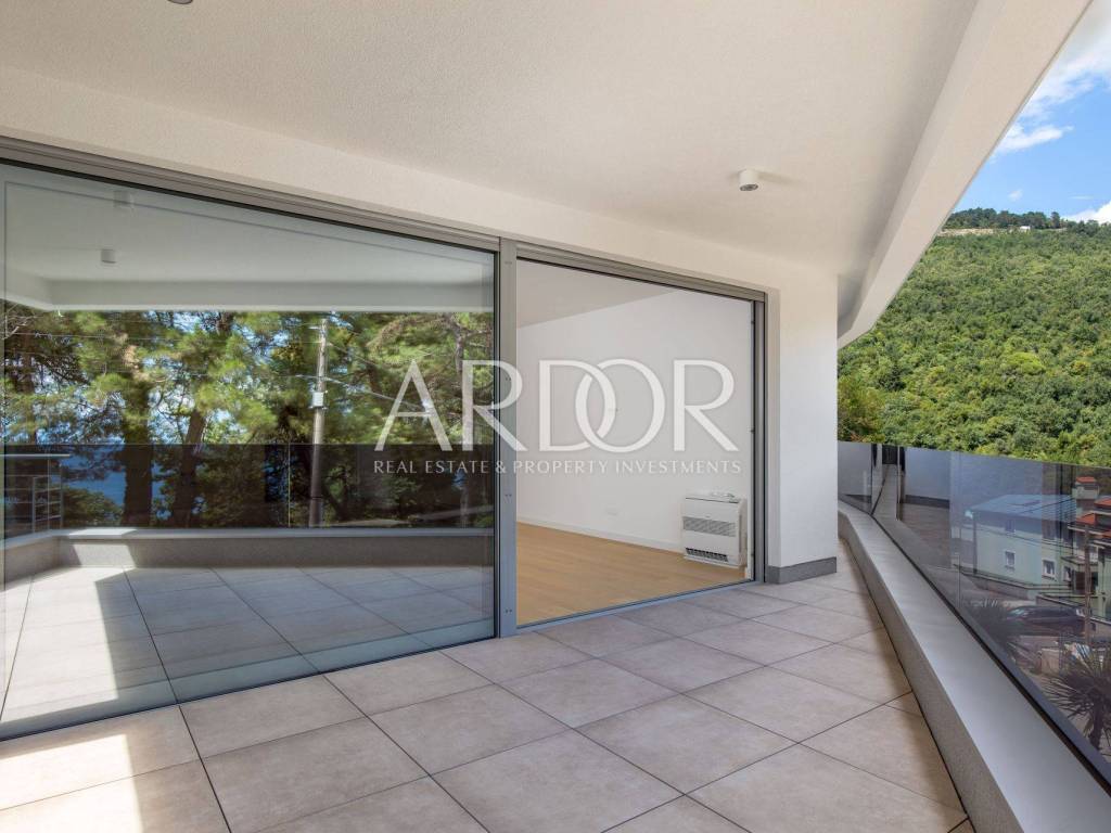 Diese luxuriöse Wohnung befindet sich in einem Neubau mit einem atemberaubenden Blick auf das Meer und das Stadtzentrum von Opatija.