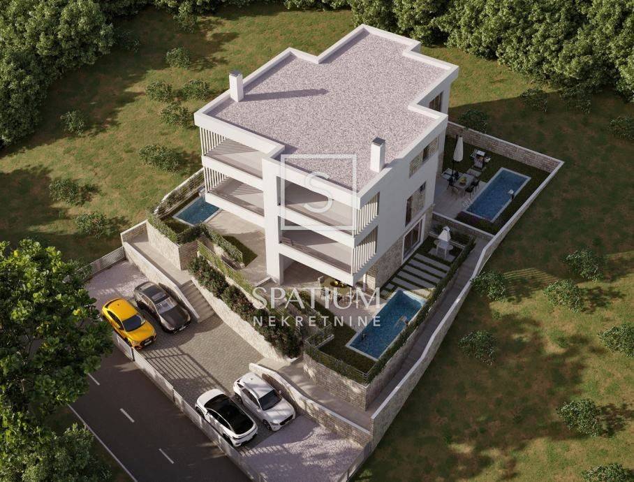 JADRANOVO, wir bieten eine zweistöckige Wohnung mit eigenem Pool, Neubau. Es befindet sich in einer wunderschönen und ruhigen Lage mit Panoramablick auf das Meer, die Insel und die gesamte Kvarner-Bucht. Eine zweistöckige Wohnung mit hervorragender Aufteilung, bestehend aus einer offenen Küche, einem Esszimmer und einem Wohnzimmer mit Zugang zur Terrasse im Innenhof und einem Badezimmer im Erdgeschoss, während sich im Obergeschoss drei Schlafzimmer mit einem Badezimmer und einem befinden großzügige Terrasse. Die Wohnung mit separatem Eingang ist Teil eines kleineren Gebäudes mit insgesamt vier Wohneinheiten, von denen noch zwei verfügbar sind. Zum Garten gehört ein Swimmingpool mit Liegewiese, ein Parkplatz und ein Platz zum geselligen Beisammensein. Verifizierter Investor, es besteht die Möglichkeit der Reservierung, Vereinbarung der Zahlungsdynamik, Teilnahme an der Auswahl der Materialien für die Enddekoration. Geplanter Abschluss der Arbeiten bis Ende 2025.