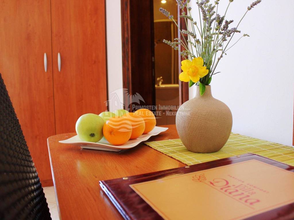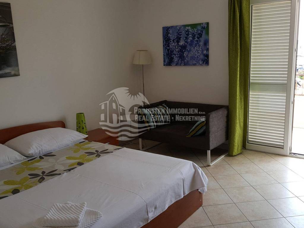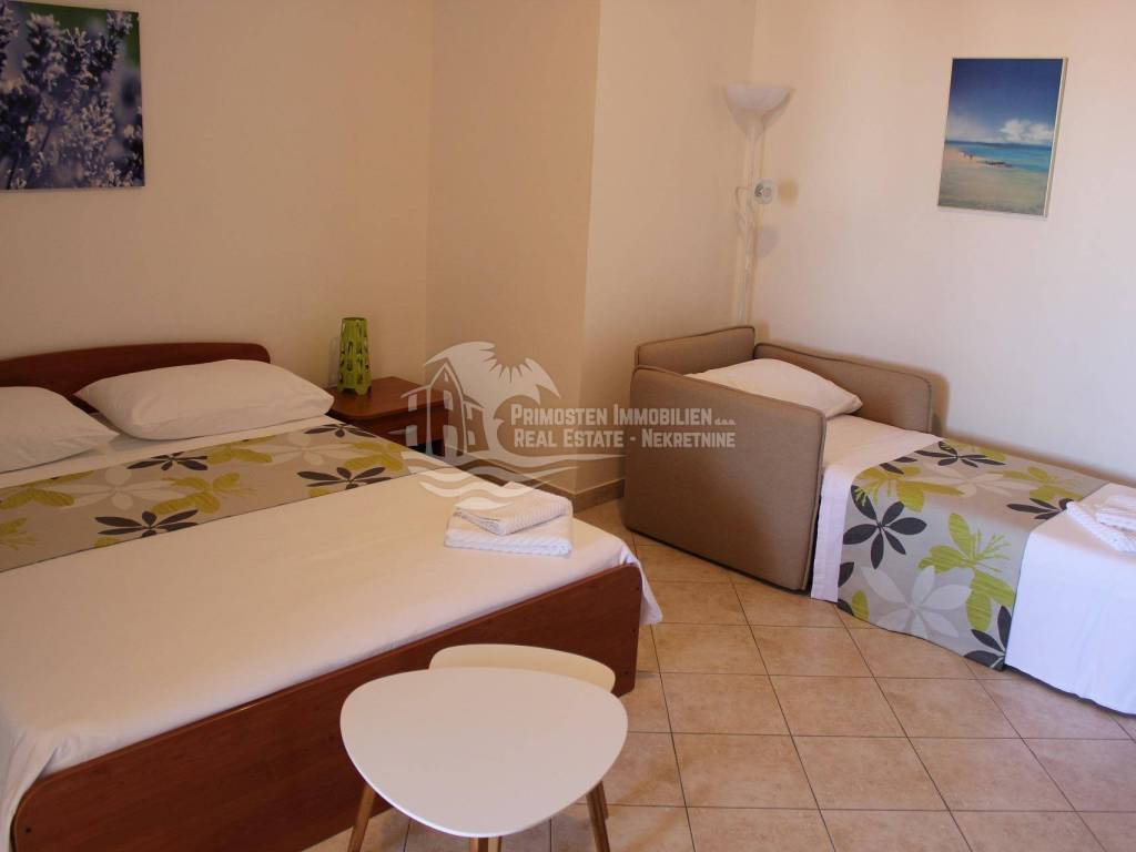 Zum Verkauf steht ein Gästehaus mit 20 Zimmern im Zentrum von Tribunj, erste Reihe zum Meer. Das Gebäude dient Gewerbe- und Wohnzwecken und besteht aus einem Erdgeschoss und drei Stockwerken. Die Gesamtfläche des Gebäudes beträgt 848 m² und es befindet sich auf einem Grundstück von 1128 m². Im Erdgeschoss befinden sich Rezeption, Sanitäranlagen, Restaurant mit Küche, Heizungsraum, Waschküche, Lagerräume und Warmwasserboiler, die an Sonnenkollektoren angeschlossen sind. Im Erdgeschoss befinden sich fünf weitere Schlafzimmer mit angeschlossenem Badezimmer. Es erstreckt sich über drei Etagen, die jeweils über fünf Schlafzimmer mit Bädern verfügen, die jeweils über einen eigenen Balkon verfügen. Es gibt einen Aufzug und ein Treppenhaus im Gebäude. Das Objekt befindet sich in attraktiver Innenstadtlage und erzielt eine hervorragende saisonale Auslastung. Das Gebäude verfügt über insgesamt 20 Schlafzimmer und dazugehörige Parkplätze. Die Aussicht vom Gebäude ist fantastisch und reicht bis zum Yachthafen von Tribunj, und alle Einrichtungen sind in unmittelbarer Nähe verfügbar.