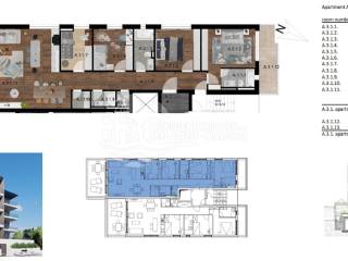 Das Penthouse befindet sich im dritten Stock und hat eine Gesamtfläche von 130,60 m2 mit Terrassen. Die Wohnung besteht aus einem geräumigen Wohnzimmer, Küche und Esszimmer, Flur, vier Schlafzimmern, drei Badezimmern, Toilette. Der Wohnbereich öffnet sich zu einer geräumigen Terrasse. Es besteht die Möglichkeit, gegen eine zusätzliche Gebühr einen Parkplatz und einen Abstellraum zu erwerben. Der Preis für einen Parkplatz beträgt 15.000 EUR und für den Abstellraum 2.000 EUR.