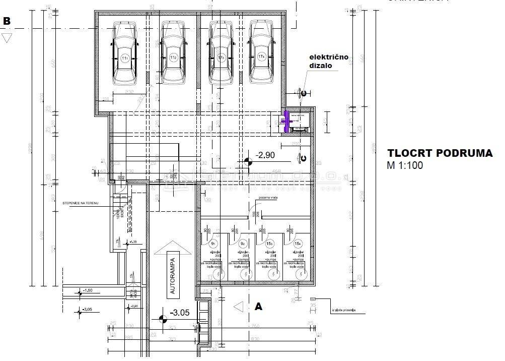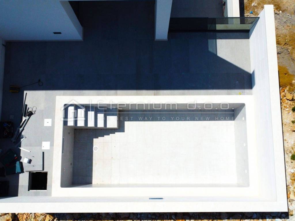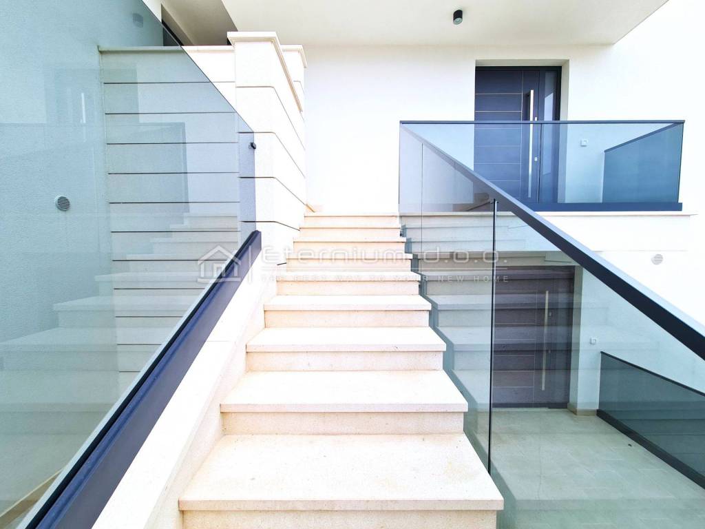 Die gesamte Villa ist mit Materialien höchster Qualität gebaut, und wir können einige davon hervorheben: einbruchsichere Eingangstür, ALU-Tischlerei, Fußbodenheizung (Wärmepumpe), Keramik und Sanitärkeramik höchster Qualität, Inverter-Klimaanlage usw., und jede Wohneinheit verfügt über absolute Privatsphäre, einen separaten Eingang, einen privaten Pool, einen Außen- und Garagenparkplatz, einen Parkplatz für Moped/Motorrad, einen Abstellraum und einen Heizraum. Die Verbindung des Kellers/der Garage mit den oberen Stockwerken erfolgt über eine gemeinsame Treppe und einen Aufzug.