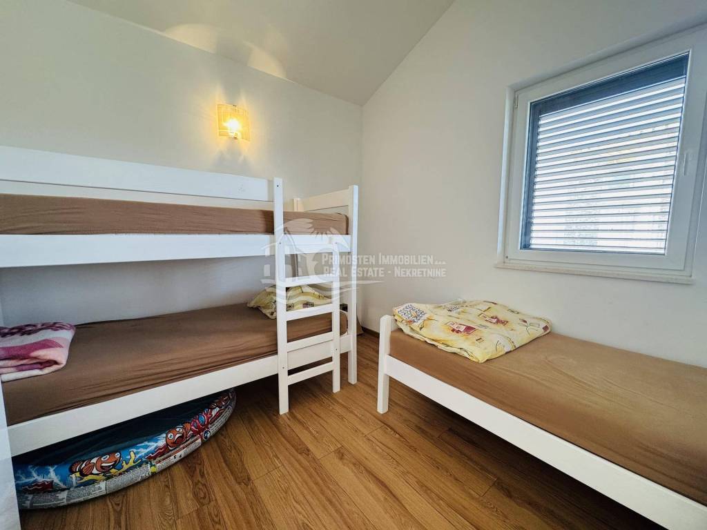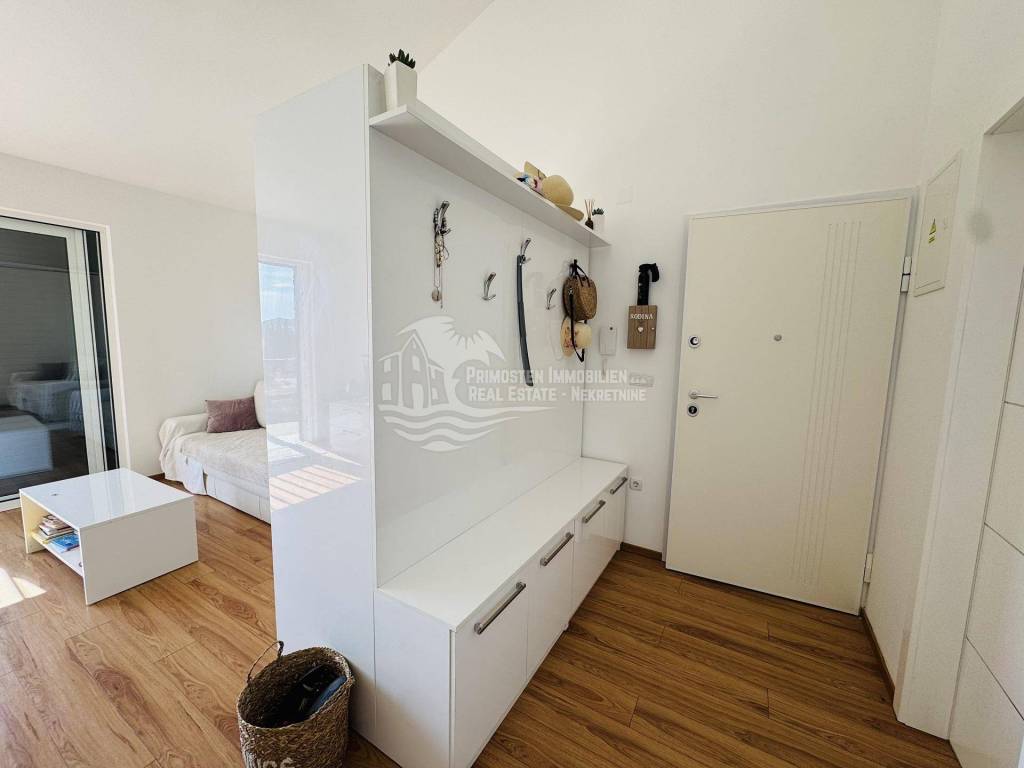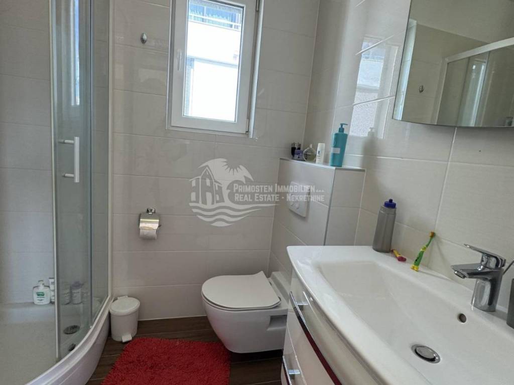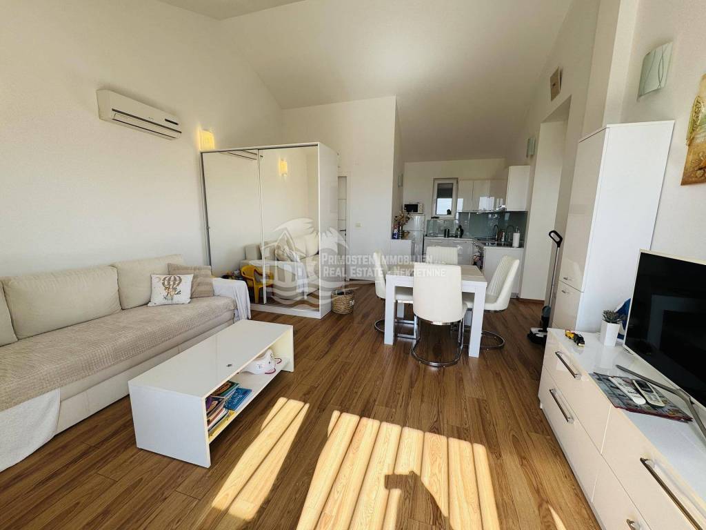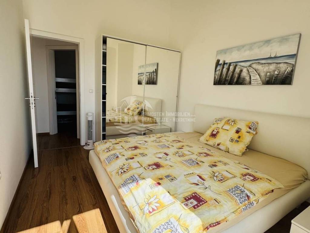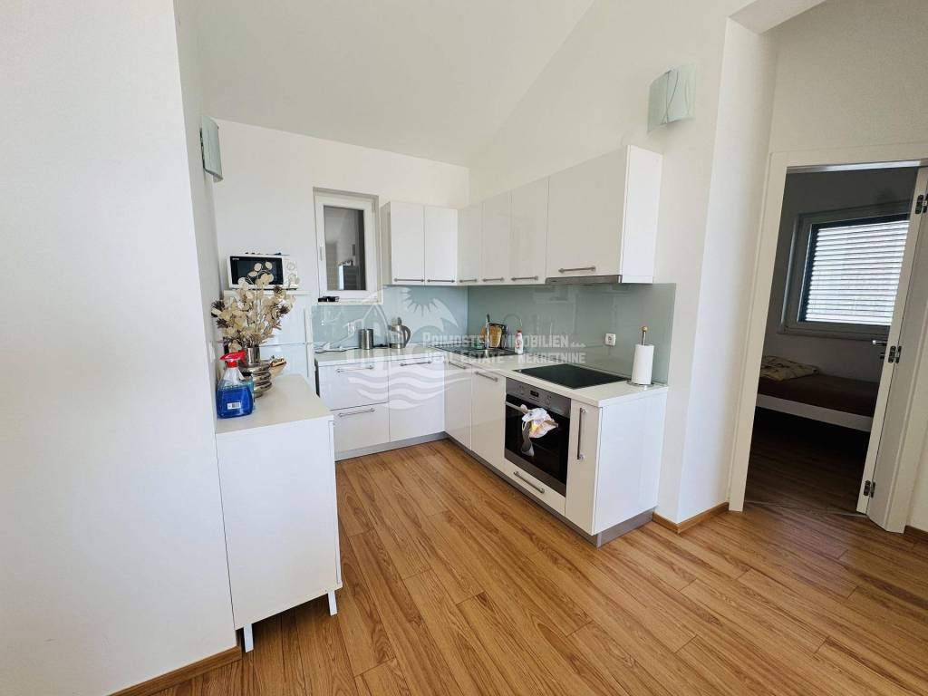 Primošten, voll möblierte Zwei-Zimmer-Wohnung im Zentrum! Einmalige Gelegenheit! Die Wohnung befindet sich in einem 2016 erbauten Gebäude mit acht Wohneinheiten. Diese modern eingerichtete Wohnung befindet sich im zweiten Stock des Gebäudes in der Nähe aller Sehenswürdigkeiten und des Zentrums von Primošten. Die Wohnung hat eine Wohnfläche von 55,71 m² und besteht aus einem geräumigen Wohnzimmer, einer Küche mit Esszimmer, zwei Schlafzimmern, einem Badezimmer und einem Flur. Vom Wohnbereich gelangt man auf eine überdachte 12 m² große Terrasse mit herrlichem Blick auf Primošten. Eine Besonderheit dieser Wohnung ist die zugehörige 22 m² große Garage, die zum Abstellen von Fahrzeugen und teilweise als Abstellraum genutzt wird.