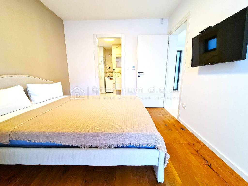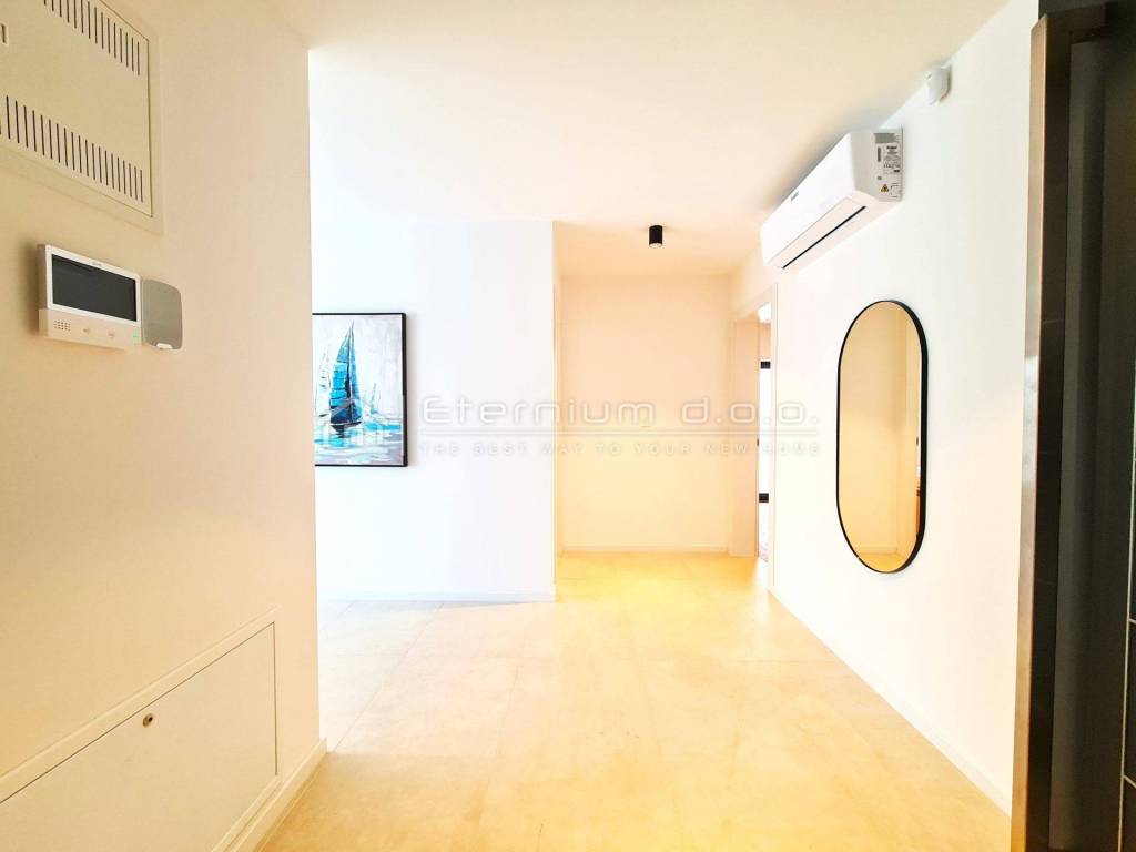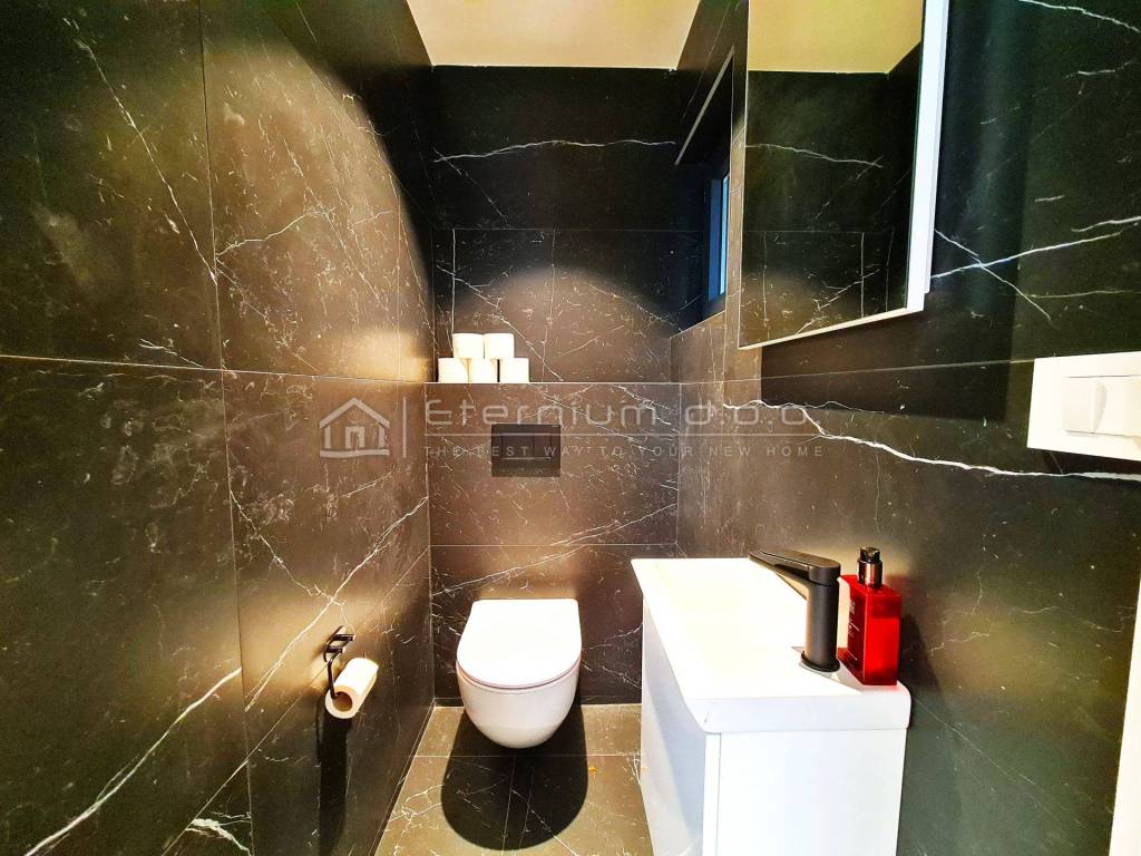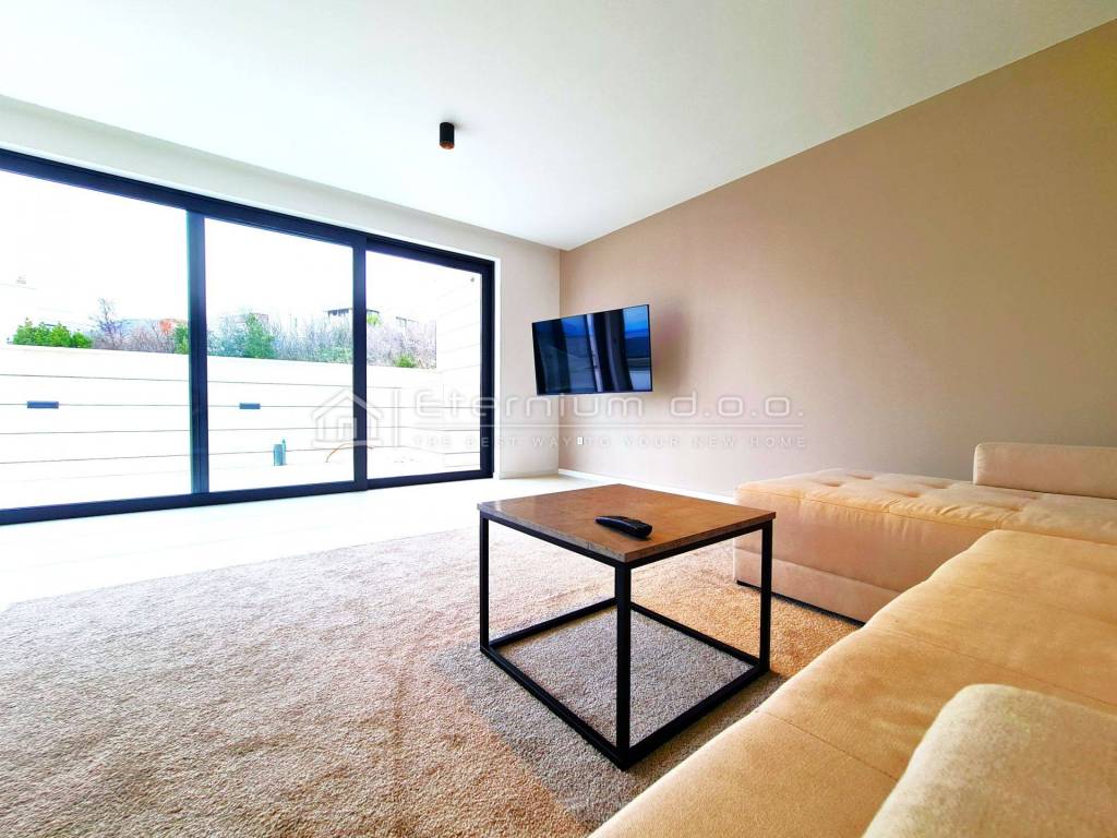 Die gesamte Villa wurde mit erstklassigen Materialien gebaut, und das gilt auch für diese Wohnung – es wurden ALU-Tischlereiarbeiten in Topqualität, Fußbodenheizung (Wärmepumpe) im gesamten Stockwerk, Keramik und Sanitärkeramik in Topqualität, Inverter-Klimaanlage usw. installiert. Jede Wohneinheit, einschließlich dieser, verfügt über absolute Privatsphäre, einen separaten Eingang, einen privaten Pool, einen Außen- und Garagenstellplatz, einen Moped-/Motorradstellplatz, zusätzlichen Stauraum in der Garage und einen Heizraum mit Abstellraum. Die Verbindung des Kellers/der Garage mit den oberen Stockwerken erfolgt über ein gemeinsames Treppenhaus und einen Aufzug.