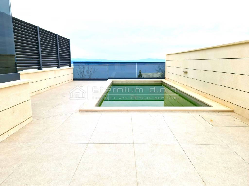 Die hier zum Verkauf stehende Wohnung/das Apartment ist einstöckig und befindet sich auf der Nordseite des oberen Erdgeschosses. Sie besteht aus einer Eingangshalle, einer Gästetoilette, zwei Schlafzimmern mit eigenen Bädern und Zugang zu einer gemeinsamen Terrasse von 34 m2 sowie einem Wohnbereich, der aus einer Küche mit Essbereich und einem geräumigen Wohnzimmer mit Zugang zu einer großen Terrasse besteht. Es gibt auch einen Heizraum mit Poolausrüstung und einen großen Lagerraum, der für verschiedene Zwecke genutzt werden kann. Weiter grenzt diese zuvor erwähnte Terrasse an die Südterrasse, auf der sich der Swimmingpool und die Sonnenterrasse befinden und von der aus man einen wunderschönen Blick auf das Meer und die Insel Krk hat.