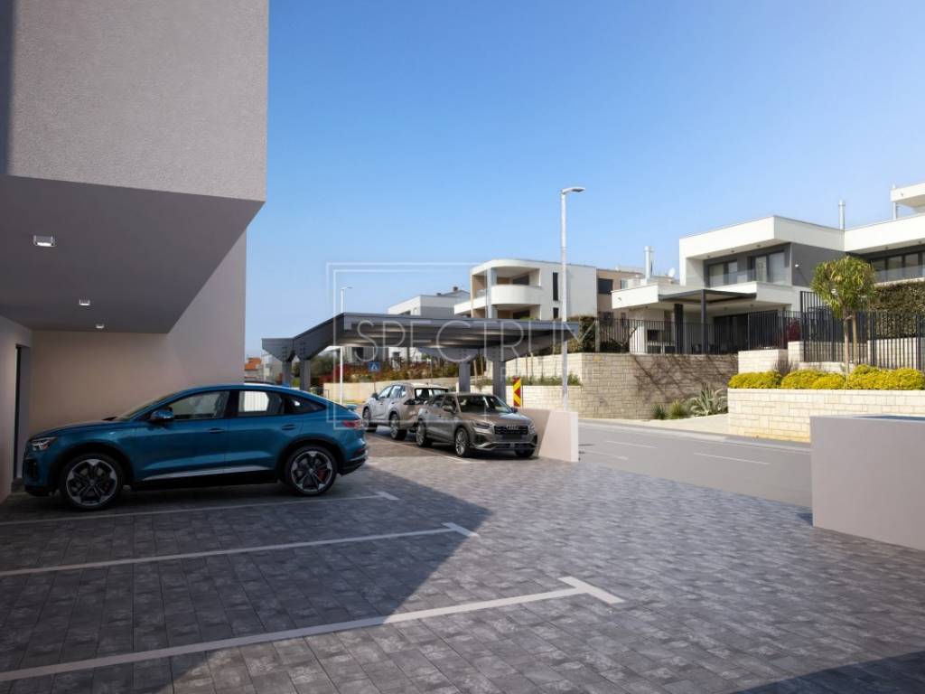 Die Wohnung befindet sich im Erdgeschoss eines neu errichteten Wohnhauses mit 8 Wohneinheiten. Die Wohnungsfläche beträgt 103,78 m2. Die Wohnung besteht aus einem Wohnzimmer mit offener Küche und Esszimmer, 2 Schlafzimmern, Badezimmer, WC, Flur, Abstellraum und einer überdachten Terrasse. Von der Terrasse aus gelangt man in einen angelegten und eingezäunten Garten von ca. 100 m2. Aufgrund der Größe und guten Raumaufteilung bietet die Wohnung viel Komfort. Die Beheizung der Wohnung erfolgt über eine Klimaanlage und eine elektrische Fußbodenheizung. Die Wohnung wird schlüsselfertig (fertige Böden und Bäder, ohne Möblierung) verkauft. Beim Bau wurden hochwertige Materialien verwendet, 25 cm Porotherm-Ziegel, 10 cm Wärmedämmung, anthrazitfarbene Aluminium-Tischlerei mit elektrischen Rollläden und Moskitonetzen. Im Keller des Gebäudes befindet sich ein zur Wohnung gehörender Abstellraum. Zur Wohnung gehört außerdem ein Parkplatz mit einer Ladestation für Elektrofahrzeuge direkt neben dem Gebäude. Das Gebäude, in dem sich die Wohnung befindet, verfügt außerdem über einen Aufzug.
