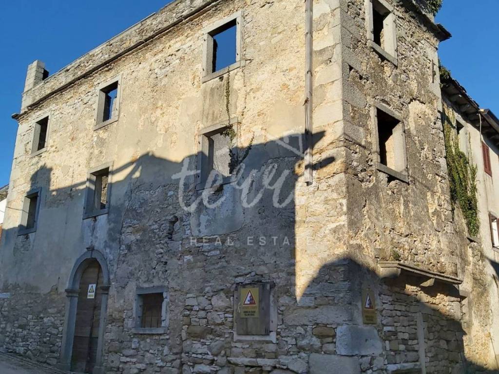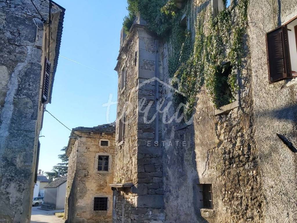 Altes Steinhaus zum Verkauf aus dem Jahr 1864, PAZIN-Gebiet. Das Anwesen befindet sich in ruhiger Lage, nur wenige Minuten von der Stadt entfernt. In der Natur Steinmauern, Ruinen, die einer kompletten Renovierung bedürfen. Die Wohnfläche von 103 m2 erstreckt sich über drei Etagen, das Haus besteht aus Erdgeschoss und zwei Etagen (Gesamtwohnfläche von 309m2). Oben befand sich früher eine Terrasse mit einer überdachten Bocciabahn. Es ist nicht an die Versorgungsinfrastruktur angeschlossen, aber die Anschlüsse befinden sich in unmittelbarer Nähe. Die Einfahrt erfolgt von einer asphaltierten Straße. Es handelt sich um eine Immobilie mit großem Potenzial, die dem zukünftigen Investor viele Möglichkeiten bietet. Keine Bürde, Eigentum ordentlich.