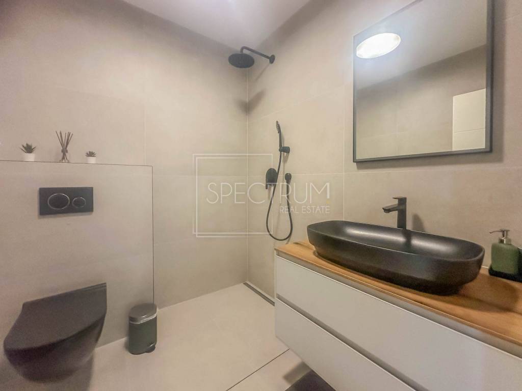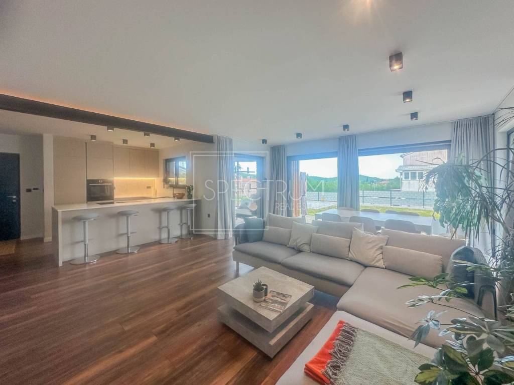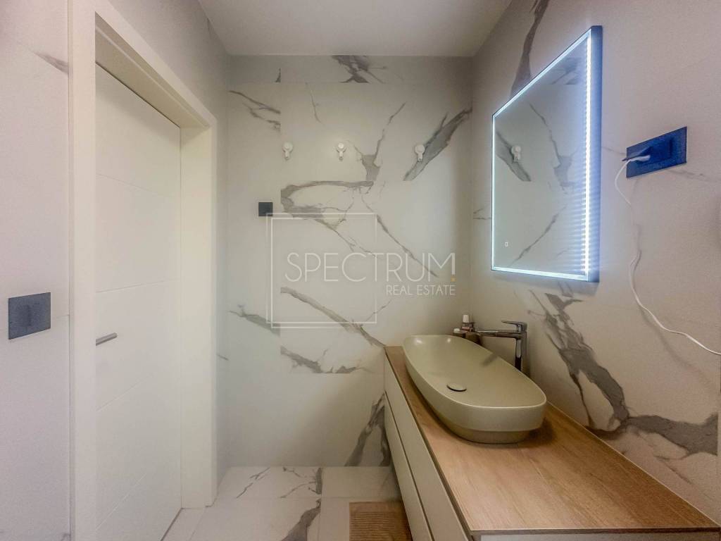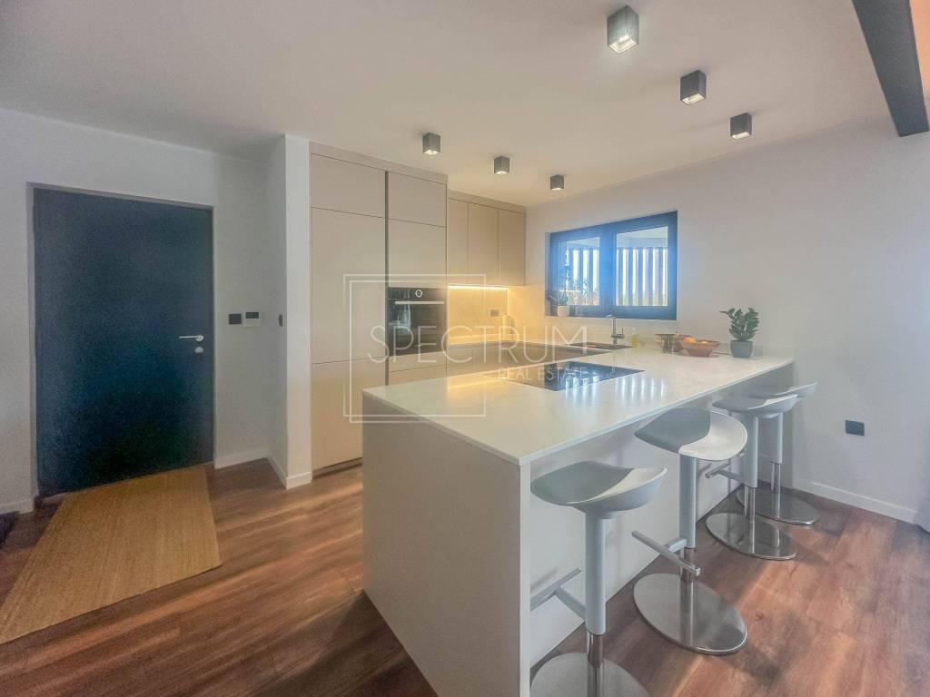 Die Hausfläche beträgt 128 m2. Das Haus besteht aus einem geräumigen offenen Wohnzimmer mit Küche und Esszimmer, 3 Schlafzimmern, 2 Bädern, Flur und Abstellraum. Vom Wohnzimmer gelangt man auf eine überdachte Terrasse, die ideal ist, um die Natur zu genießen. Beheizt wird das Haus über eine Fußbodenheizung mit Wärmepumpe und Klimaanlage. Das Haus wird möbliert verkauft. Beim Bau selbst wurden hochwertige Materialien verwendet, Laminat und Keramikfliesen wurden auf dem Boden verlegt, PVC-Tischlerei mit Dreifachglas, Sicherheitstüren, ein Wasserreiniger, eine Gegensprechanlage und Vorbereitungen für die Videoüberwachung wurden installiert.