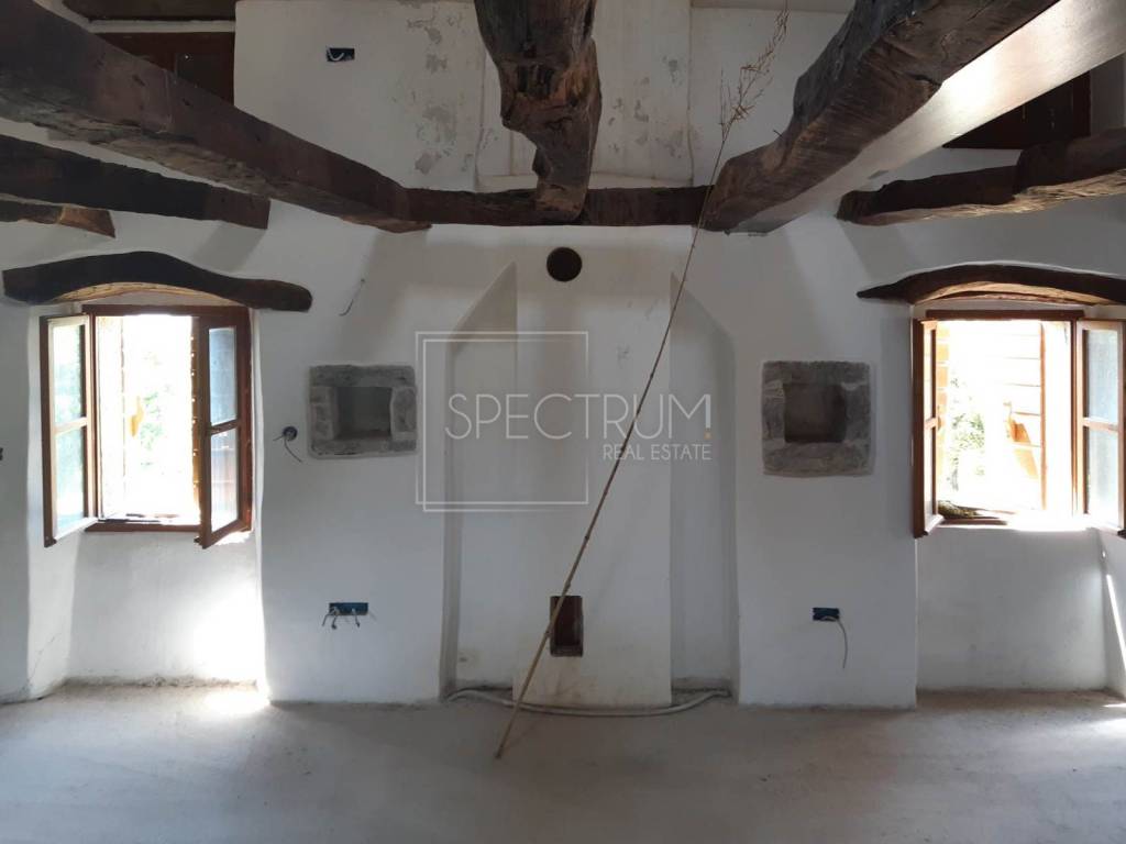 Das Haus erstreckt sich über das Erdgeschoss und den ersten Stock. Es besteht die Möglichkeit, eine Galerie einzurichten. Die Wohnfläche dieses traditionellen istrischen Hauses beträgt 116 m². Im Erdgeschoss befinden sich ein Wohnzimmer mit Küche und Esszimmer sowie ein Badezimmer. Im ersten Stock befindet sich derzeit ein offener Raum, der in mehrere Schlafzimmer umgewandelt werden kann. Das Haus bietet einen wunderschönen Panoramablick auf das Meer und die grünen Hügel Istriens. Das Haus wurde kürzlich im istrischen Stil renoviert. Es wird unmöbliert verkauft, wie auf den Fotos zu sehen. Das Haus verfügt über einen eigenen Wasseranschluss. Strom befindet sich am Rande des Grundstücks.