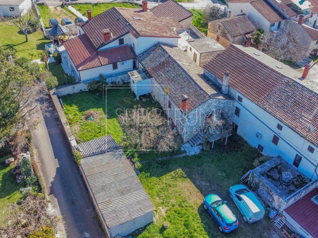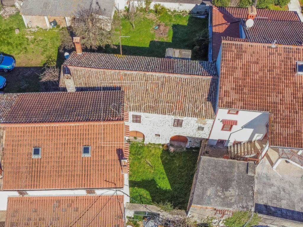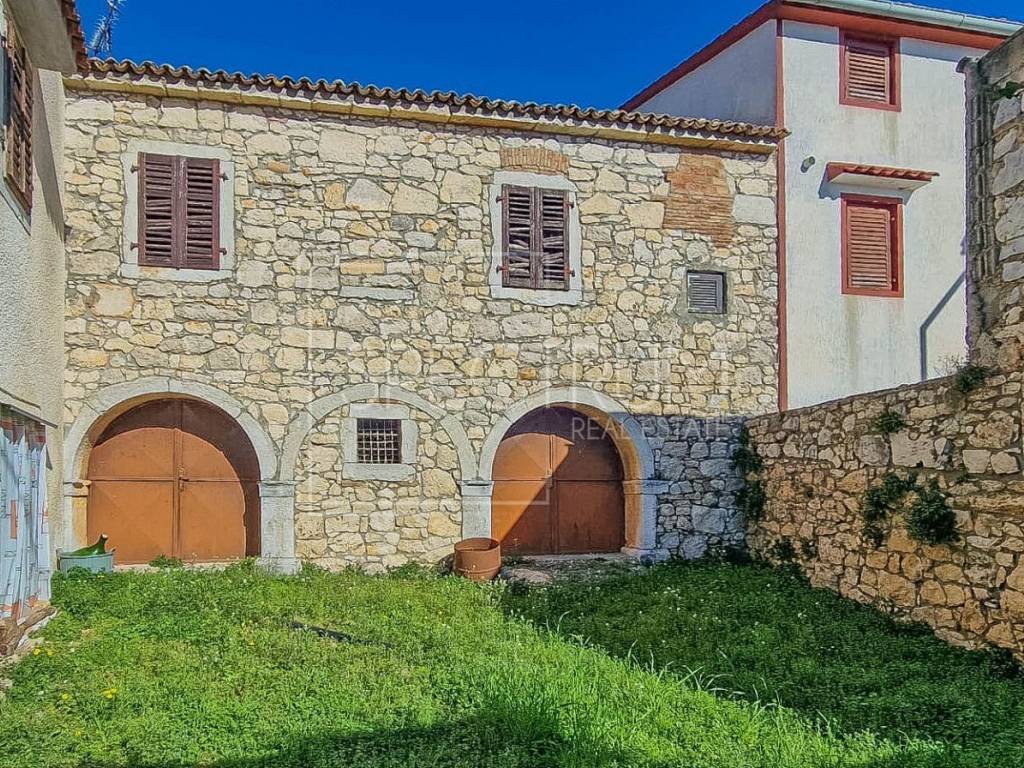 Dieses authentische istrische Reihenhaus erstreckt sich über Erdgeschoss und Obergeschoss und bietet eine Wohnfläche von 220 m². Das Haus ist renovierungsbedürftig, verfügt aber über solide, 60 cm dicke Steinmauern und bietet somit eine gute Basis mit Potenzial. Die Inneneinrichtung kann nach den Wünschen des neuen Eigentümers gestaltet werden. Das Haus besitzt einen Kamin. Es wurde vor 1968 erbaut, alle Anschlüsse sind vorhanden, und ein Abwasseranschluss befindet sich direkt neben dem Grundstück.