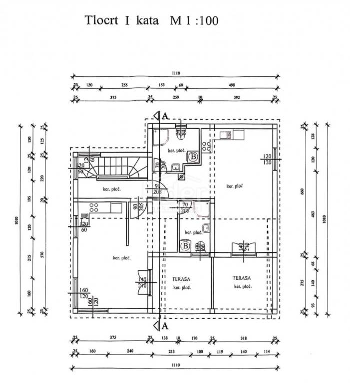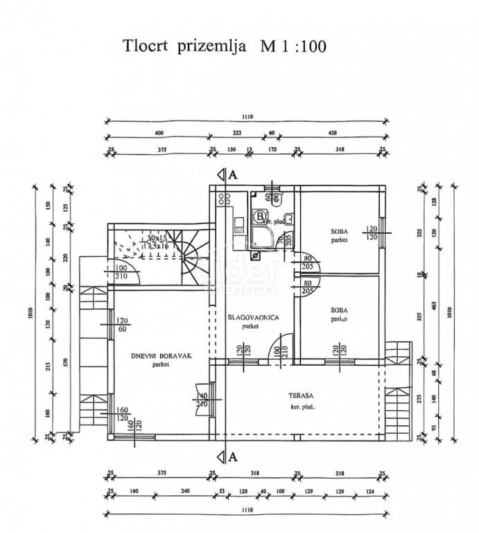 Im Erdgeschoss befindet sich eine komfortable Wohnung mit zwei Schlafzimmern, einem Badezimmer, einer Küche mit Esszimmer, einem Wohnzimmer und einer großen Eingangsterrasse.
