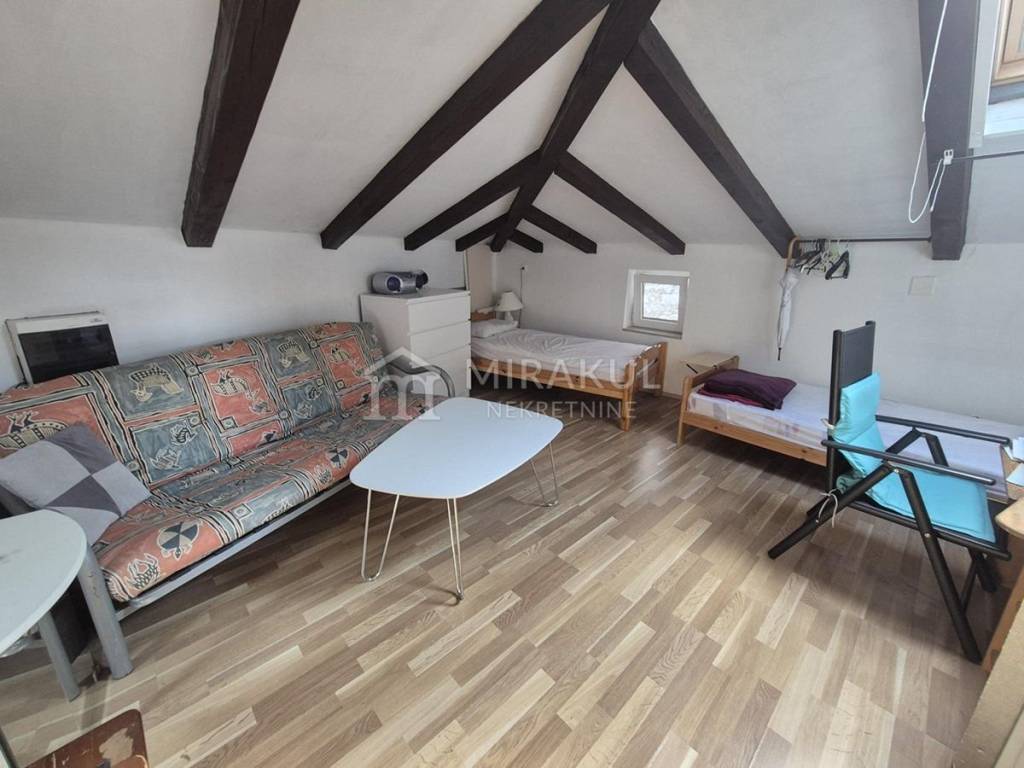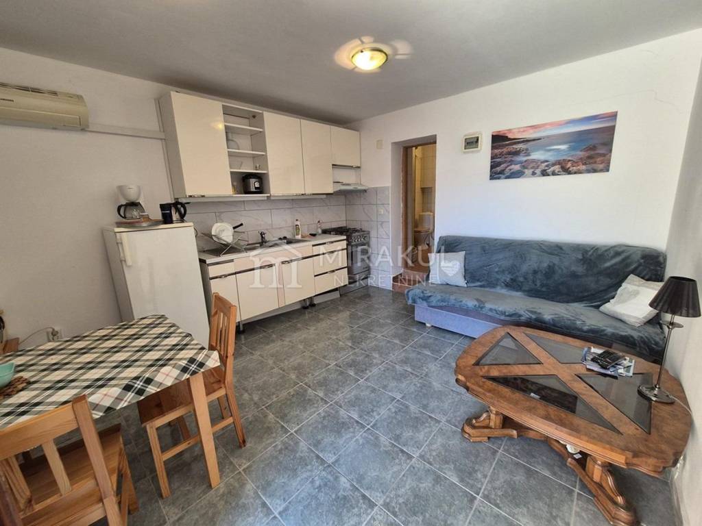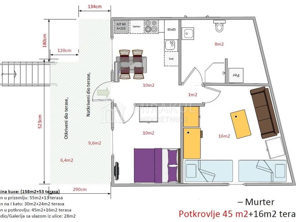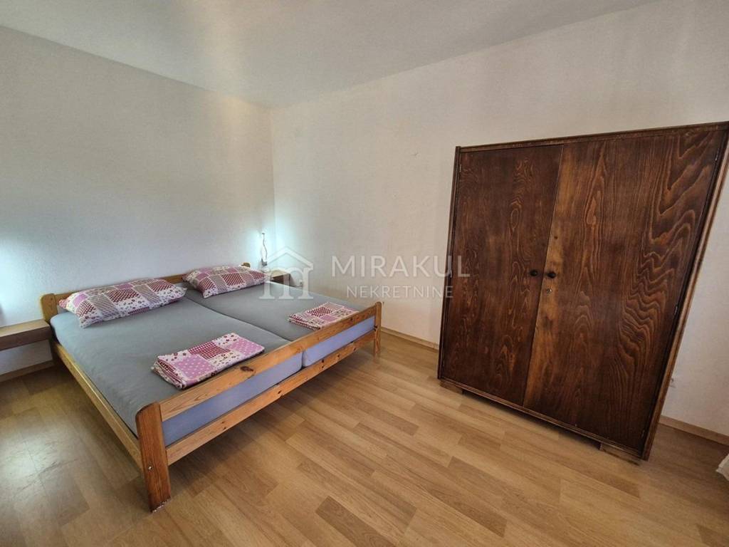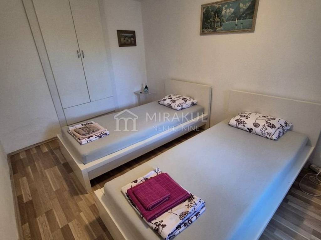 Dachgeschoss – Zwei Schlafzimmer, eine voll ausgestattete Küche mit Waschmaschine, ein Badezimmer mit Waschmaschine und eine große Terrasse mit Blick auf das Meer und die Kornati.