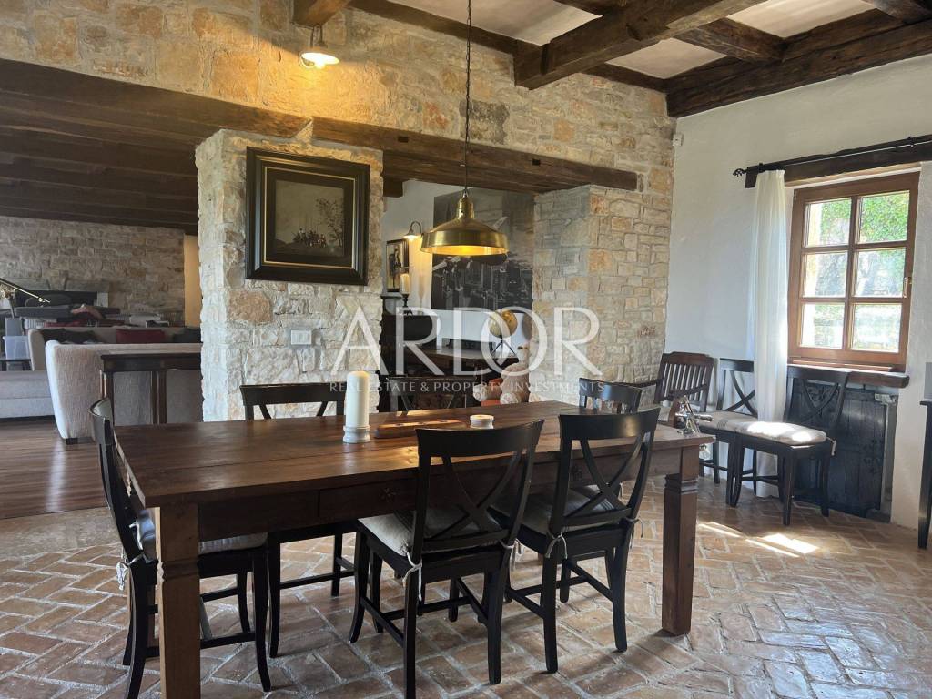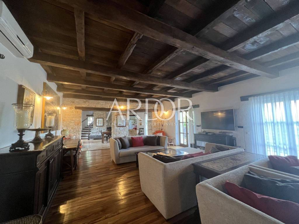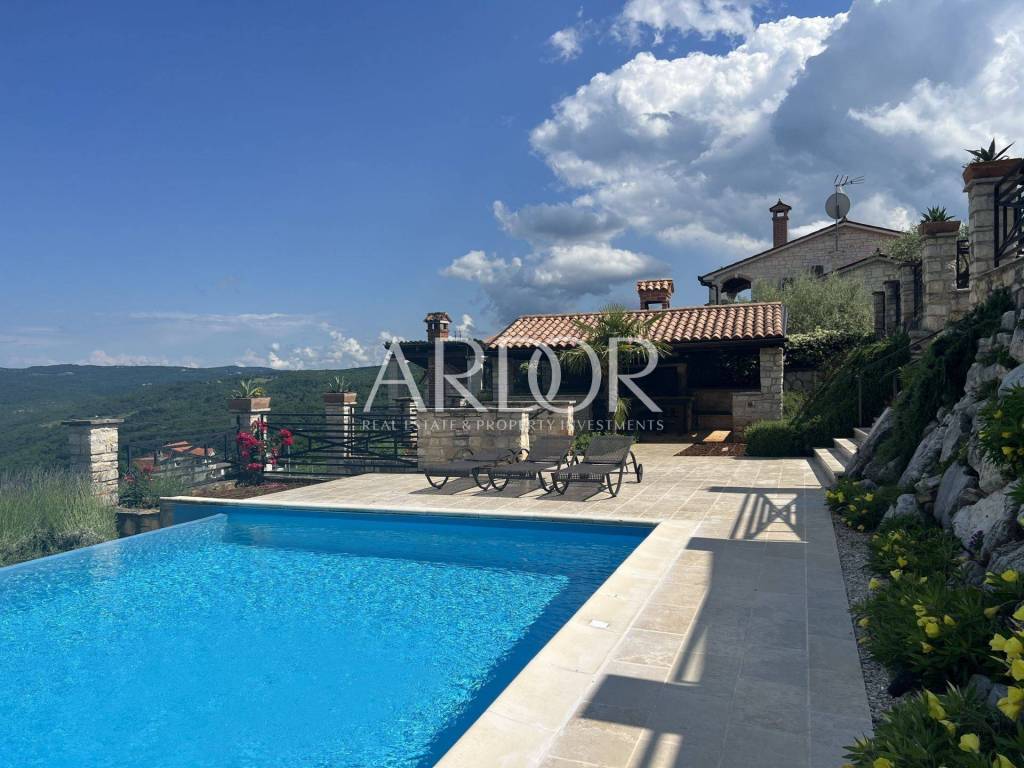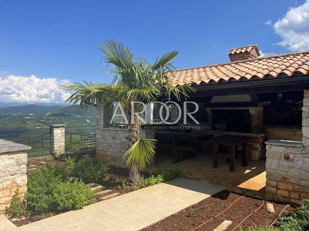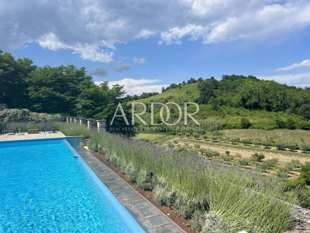 Vor der Villa befinden sich drei überdachte Parkplätze. Diese wunderschöne Villa vereint alle Elemente für einen luxuriösen Urlaub oder ein ruhiges Leben. Die Villa ist eine Kombination aus natürlichen Materialien, Stein und Holz, die sich perfekt in ein modernes Zuhause einfügen und ein Gefühl von Komfort vermitteln. Seine Größe, sein schönes Design, seine Bauqualität, Anordnung und Ausstattung garantieren Komfort und Eleganz des Wohnens. Zusätzlich zu seiner Schönheit und seinem Inhalt ermöglicht Ihnen die hervorragende Lage, alle Reize des Landesinneren Istriens zu erleben – die Weinregion, in der Nähe berühmter Winzer, Restaurants, eines vielfältigen Speise- und Weinangebots, in der Nähe von Radwegen und nur zehn davon Minuten vom Meer und den Stadtzentren entfernt. Es ist ideal für Naturliebhaber und Aktivurlauber und liegt in der Nähe von Motovun und anderen berühmten Touristenorten, die eine große Vielfalt an Einrichtungen bieten.