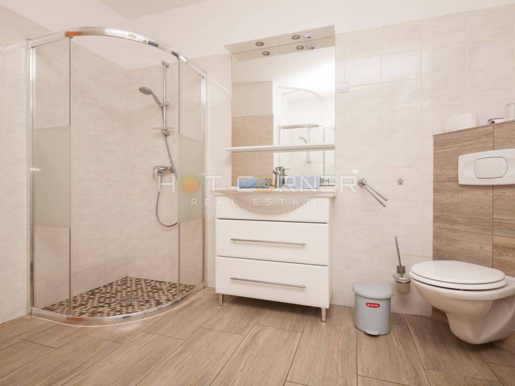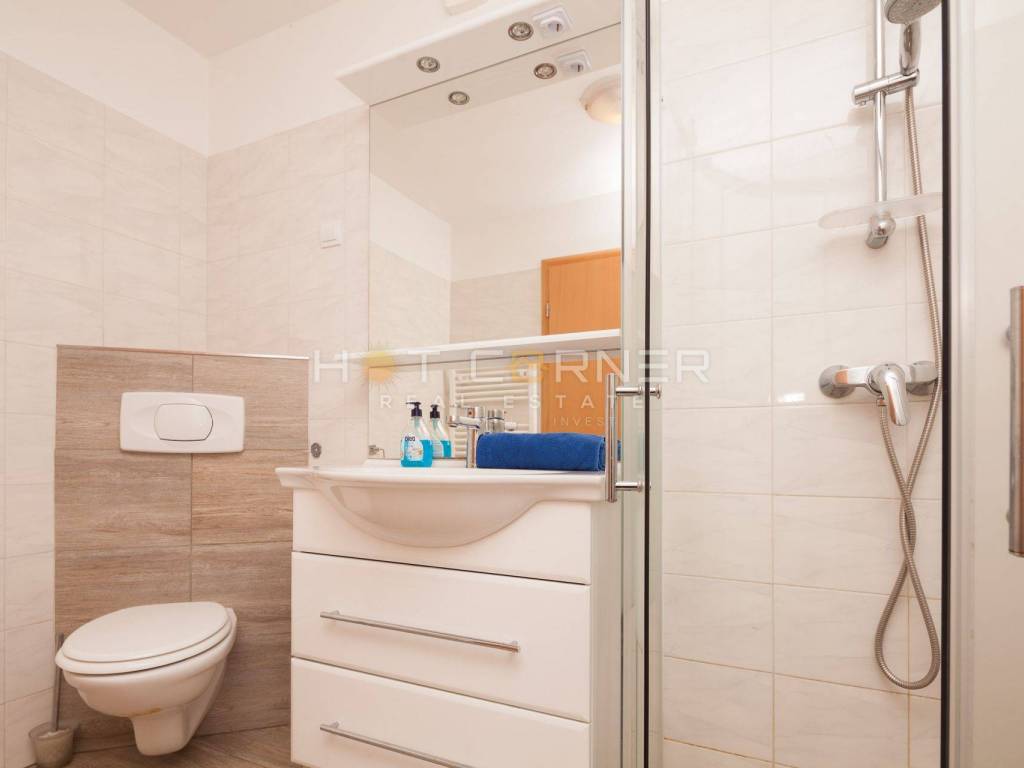 Die kleinere Wohnung besteht aus: Vorraum, Bad mit WC, Schlafzimmer, Küche mit Essbereich und Wohnzimmer (Wohnzimmer hat eine Schlafcouch) und Terrasse.